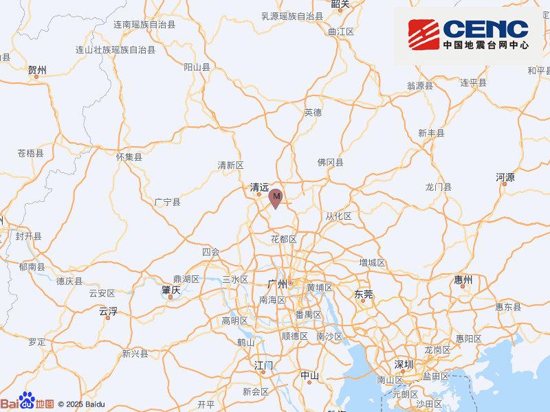 2025年6月23日18时48分,广东省清远市清城区附近(北纬23.61度,东经113.13度)发生4.3级地震,震源深度10千米。