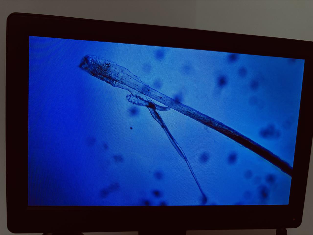 接诊的眼科医生吴静为小李做了相关检查,在裂隙灯下,发现其睫毛根部有大量的鳞屑状皮脂增生,睑缘肥厚充血及污浊,经进一步检查,小李的睫毛根部竟然存在大量螨虫,最多的一根甚至附着8只活体螨虫,远超安全阈值,最终诊断为“蠕形螨睑缘炎”。
