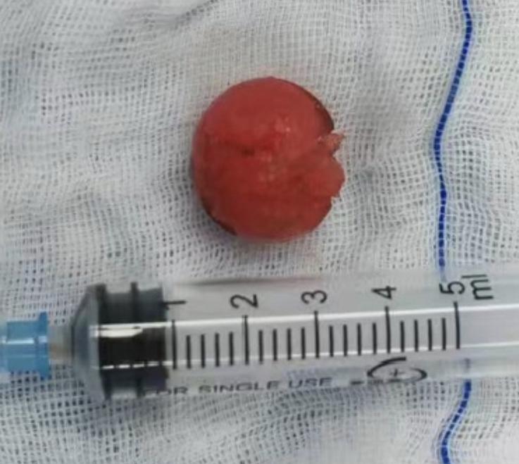 为探明真相,医护团队精心筹备,在手术室全麻下,通过鼻内镜探查发现,所谓的 “囊肿” 竟是吸饱水膨胀的红色水宝宝。随后医生谨慎取出异物,追问病史后,家长才回想起孩子曾玩过水宝宝玩具,推测孩子是在玩耍时好奇将干瘪 “珠子” 塞入鼻孔,水宝宝遇鼻腔湿润环境后疯狂膨胀,引发炎症。