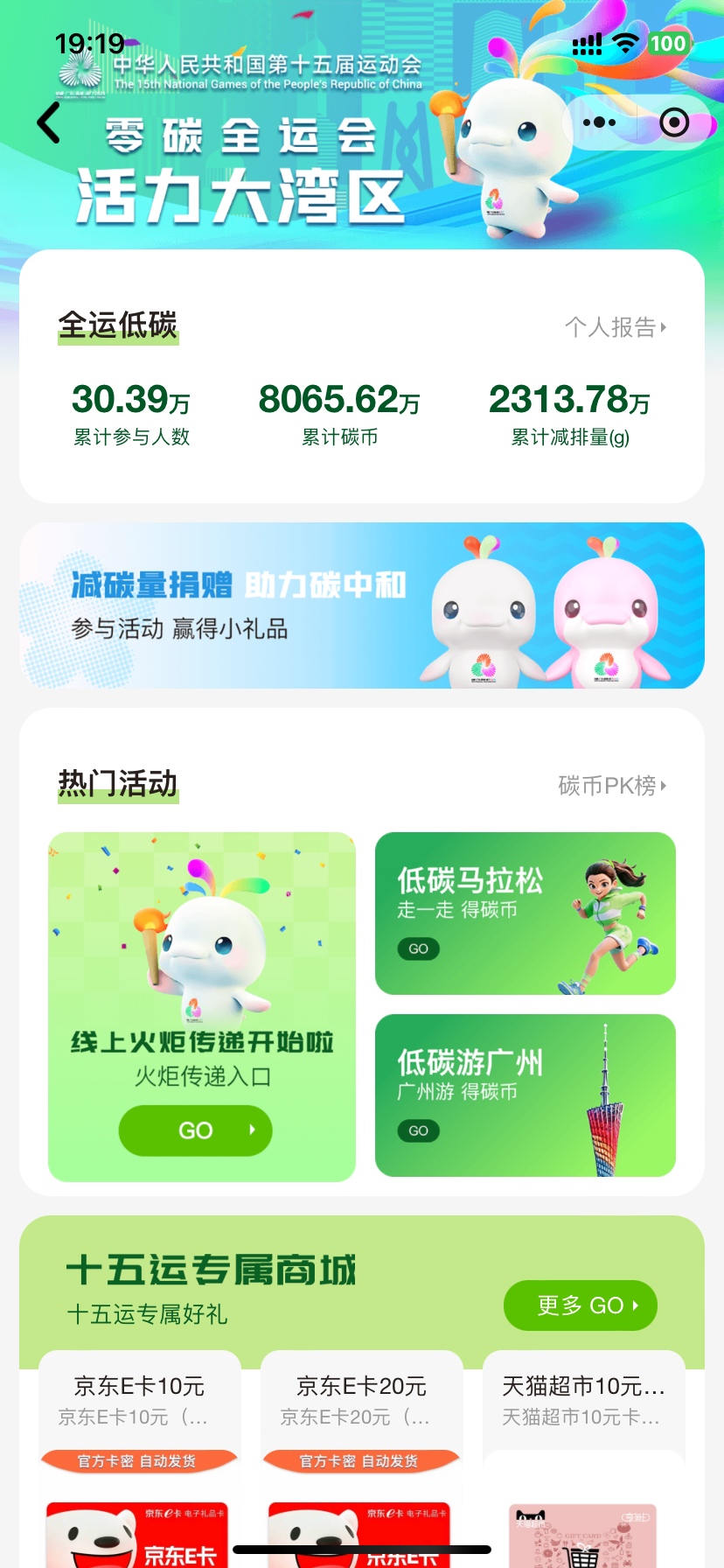 “我已经积累了2000多克的碳减排量和500多枚碳币,上周还兑换了电商购物券。”市民黄小姐是全运会线上火炬传递活动的第231号线上火炬手,她现场表示,要将自己的碳减排量捐赠到十五运会碳中和项目。