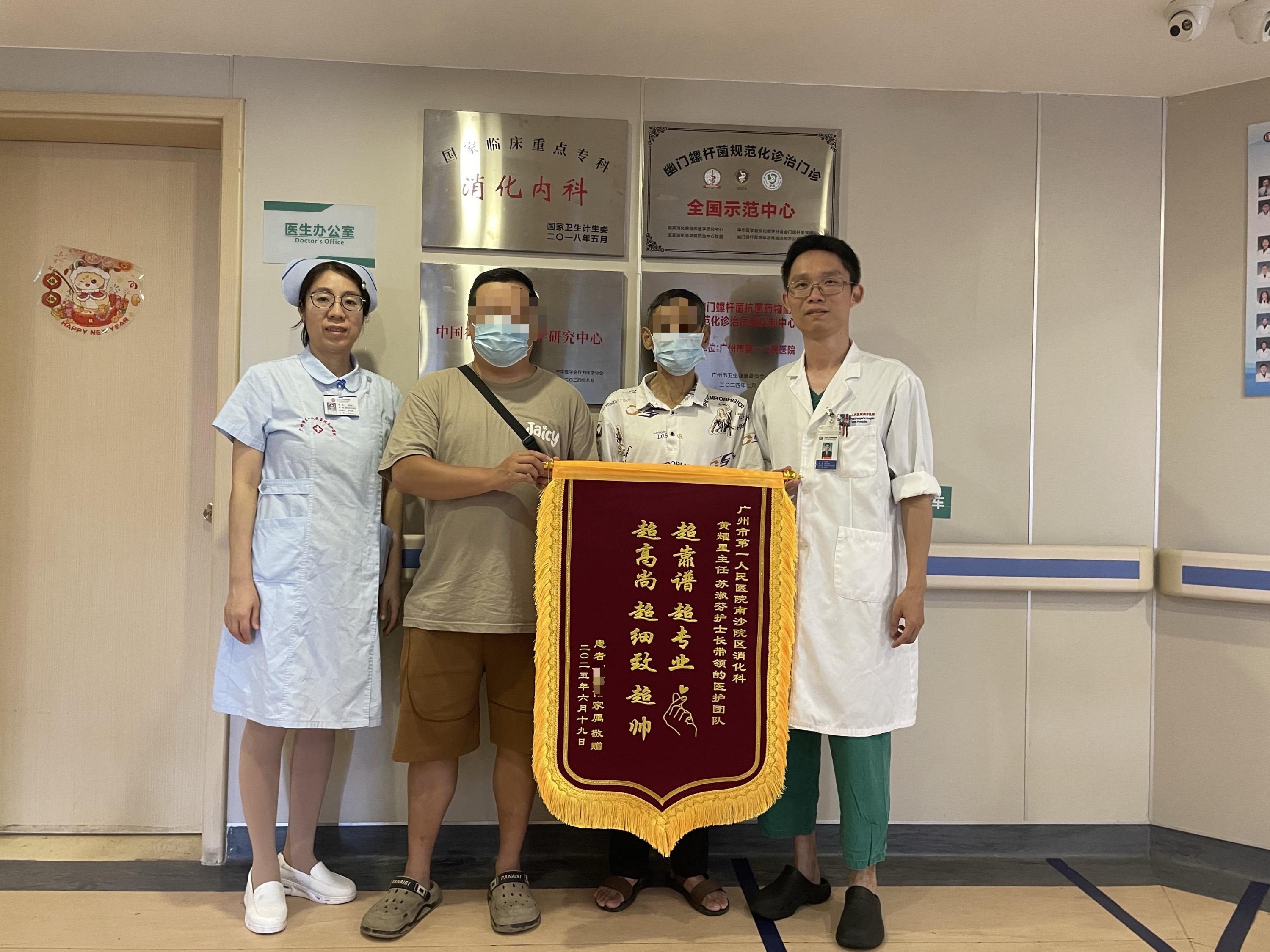 “我们真的是太感激医院了。”家属把锦旗送到了消化内科。黄耀星主任叮嘱家属:“定期到医随访,我们会持续随访观察阿叔的病情。”