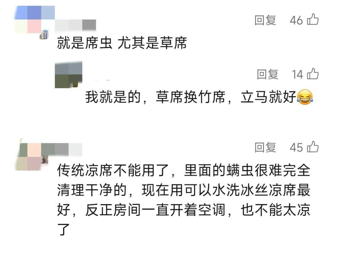 还有网友表示会不会生螨虫,凉席的材质是关键。