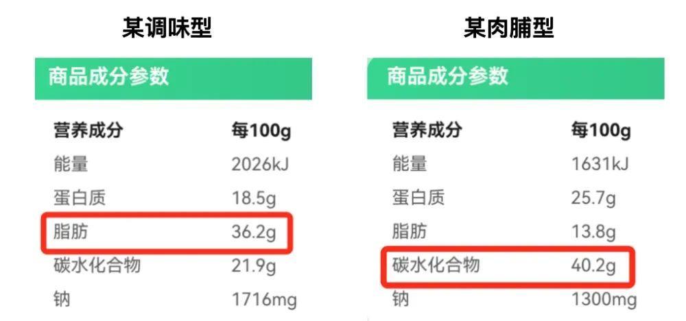 控钠控糖:钠含量≤800mg/100g为好,最多不超过1000mg/100g,碳水化合物(尤其是糖)越低越好。