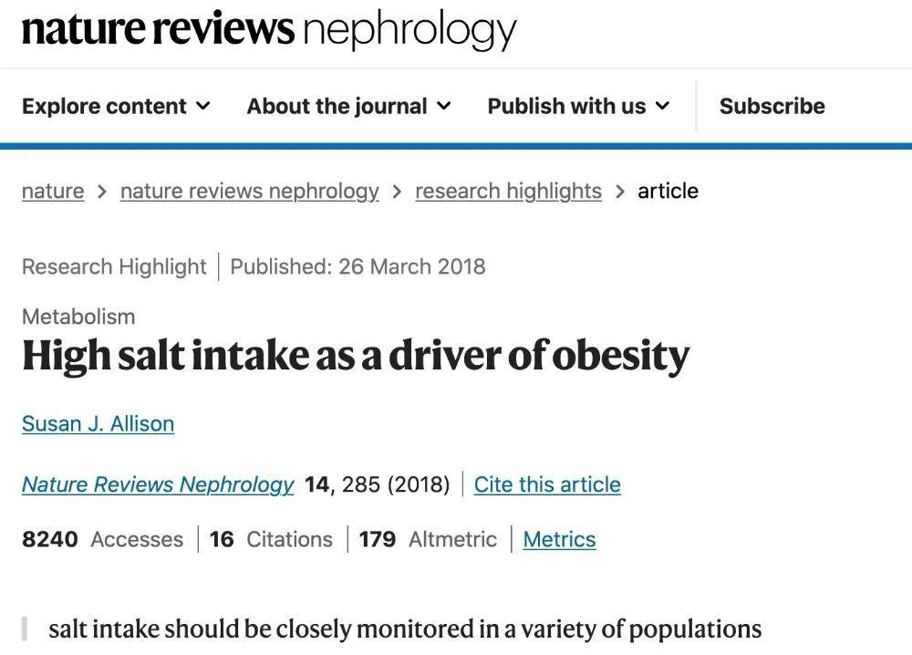 答案在于盐对我们食欲和饮食行为的微妙影响。比如2018年《自然评论》杂志里发表的一篇研究发现,高盐摄入实际上可以通过增加内源性糖的产生和代谢来刺激食欲,从而使人更容易在不知不觉中摄入更多的食物。