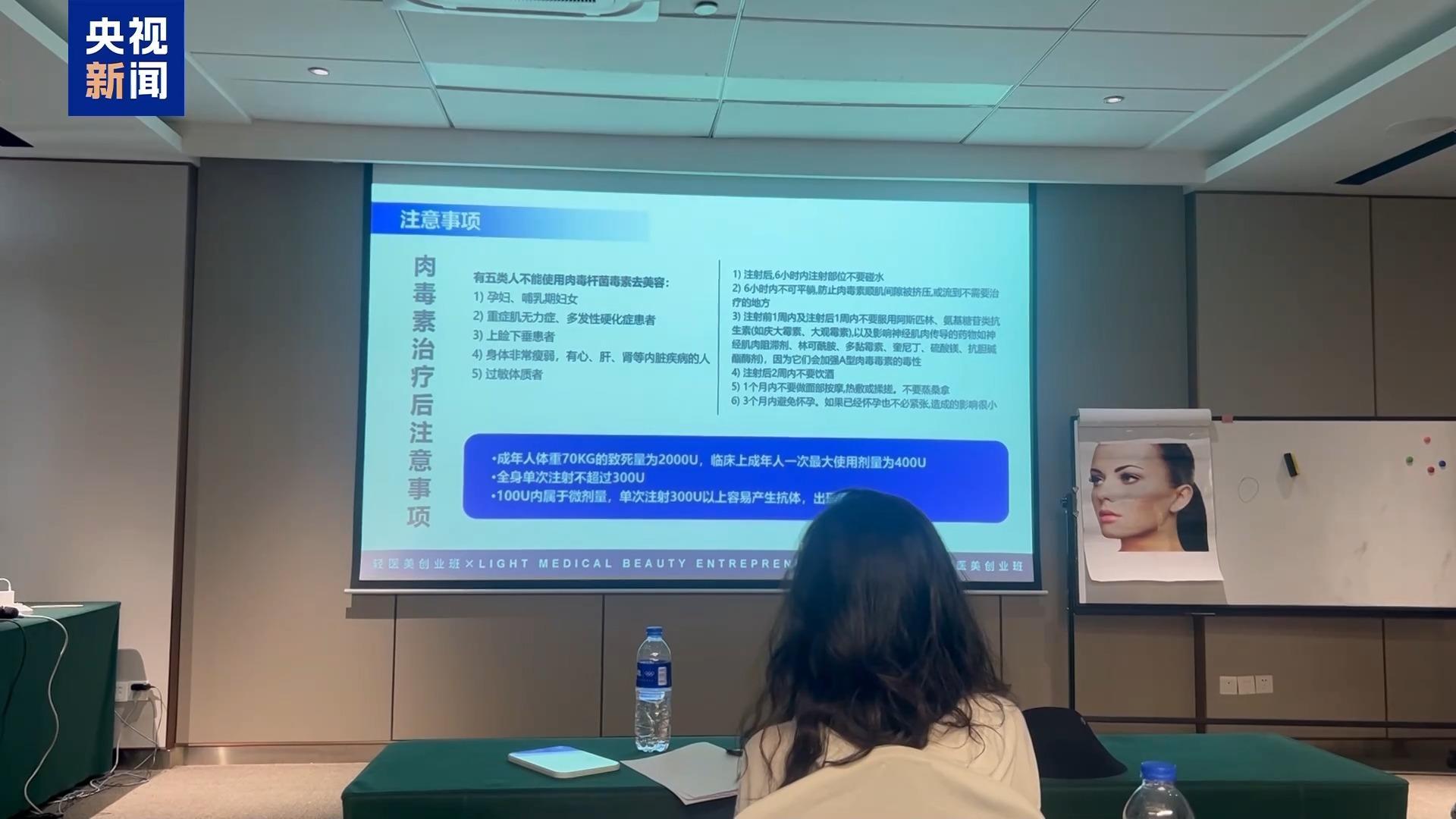 这位培训师介绍,三天培训中包括理论学习、针剂注射实操以及如何经营自己的朋友圈,如何吸引顾客,如何解决顾客投诉等。在讲解肉毒素时,培训师特地强调了注射肉毒素的风险。