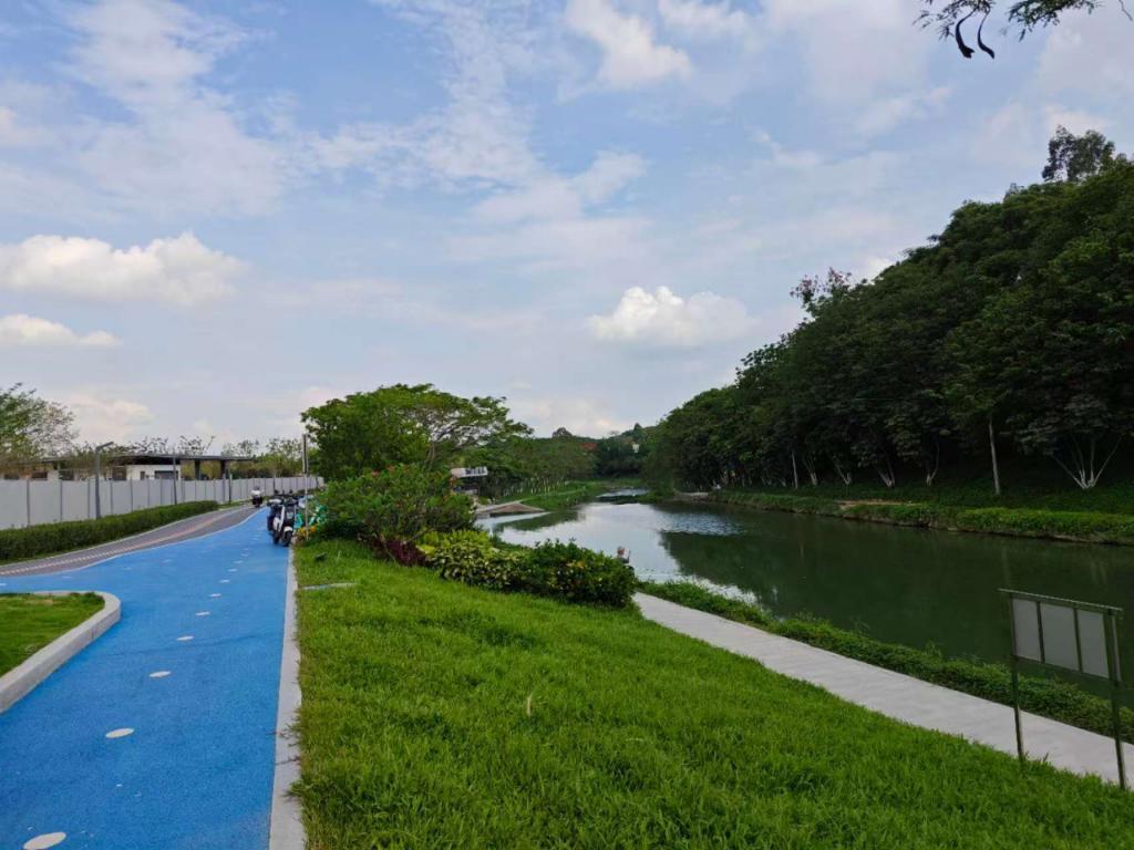 骑车遛娃!在滨水漫步时感知水清岸绿