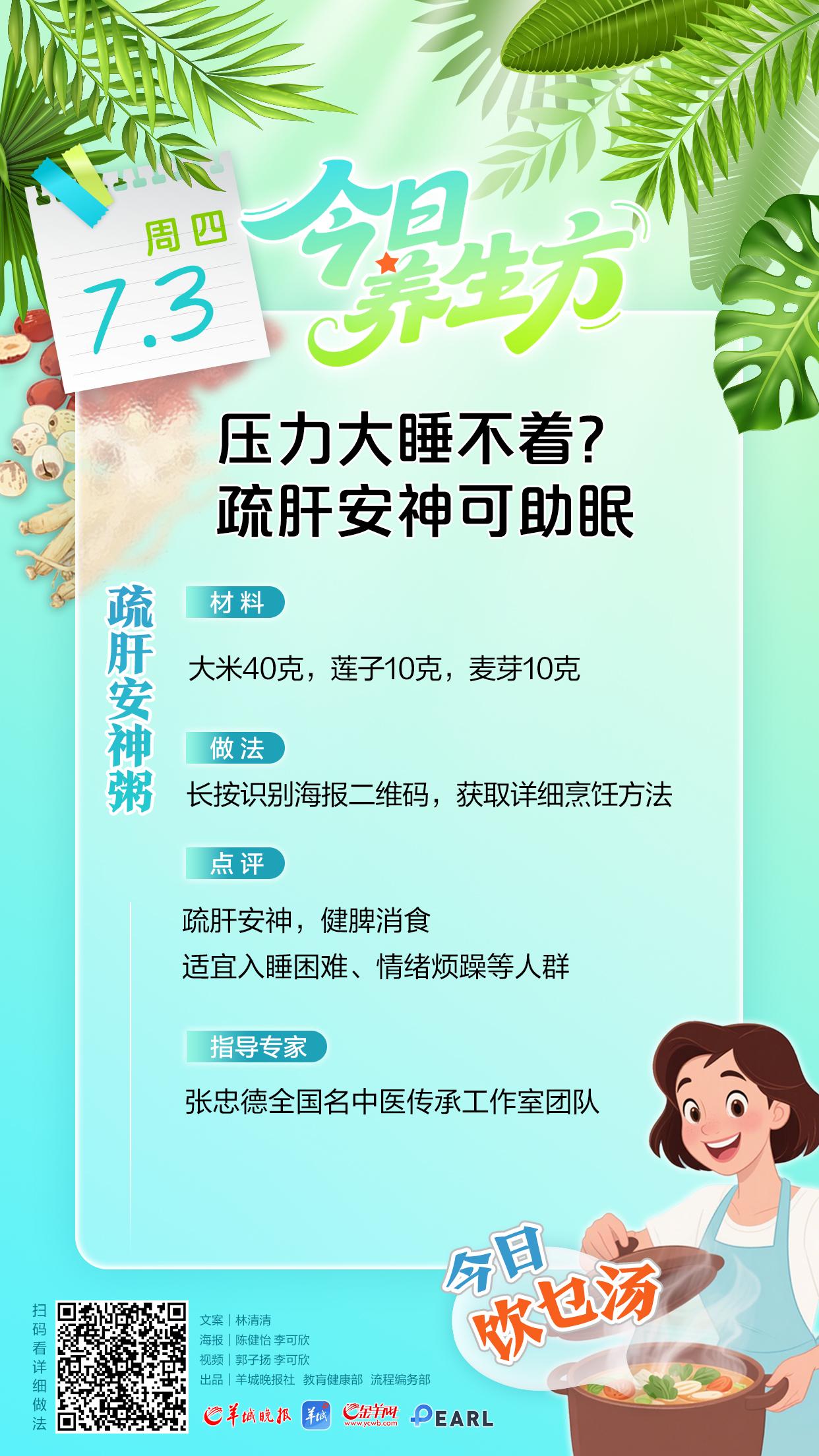 期末考试期,学习压力大,学生容易出现失眠、心烦意燥、食欲不振等情况,此时该怎么办呢?张忠德全国名中医传承工作室团队建议,此时应舒缓情绪压力,保证睡眠质量,同时做做呼吸操,并推荐了一道疏肝安神粥。