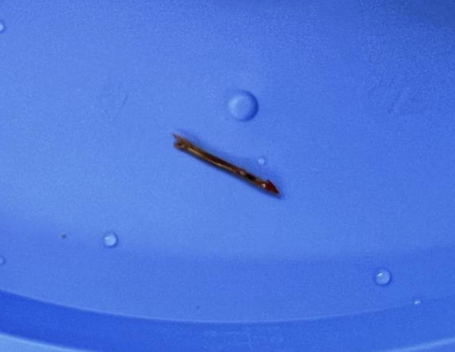 中后段小肠腔内卡着的约2cm的棒状异物,两端尖锐刺入肠壁黏膜。管床医生卢嘉豪反复阅片后追问病史,小刘几番回忆才想起几天前在外聚餐,吃了桌上的牛蛙,可能就是当时无意中吃下去的。而这个“牛蛙骨刺客”也是个狠角色,顺着食管、胃一路向下,滞留于小肠。如果不及时处理,可造成小肠穿透性损伤,导致肠穿孔、消化道出血、腹腔感染等严重并发症。