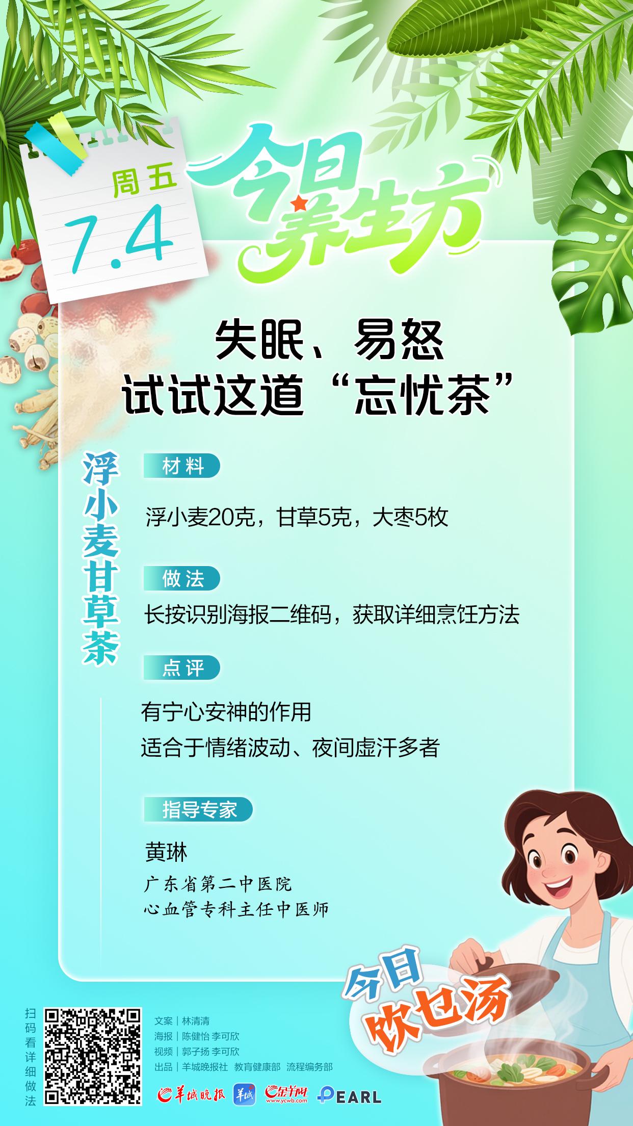 【点评】有宁心安神的作用,适合于情绪波动,夜间虚汗多者。