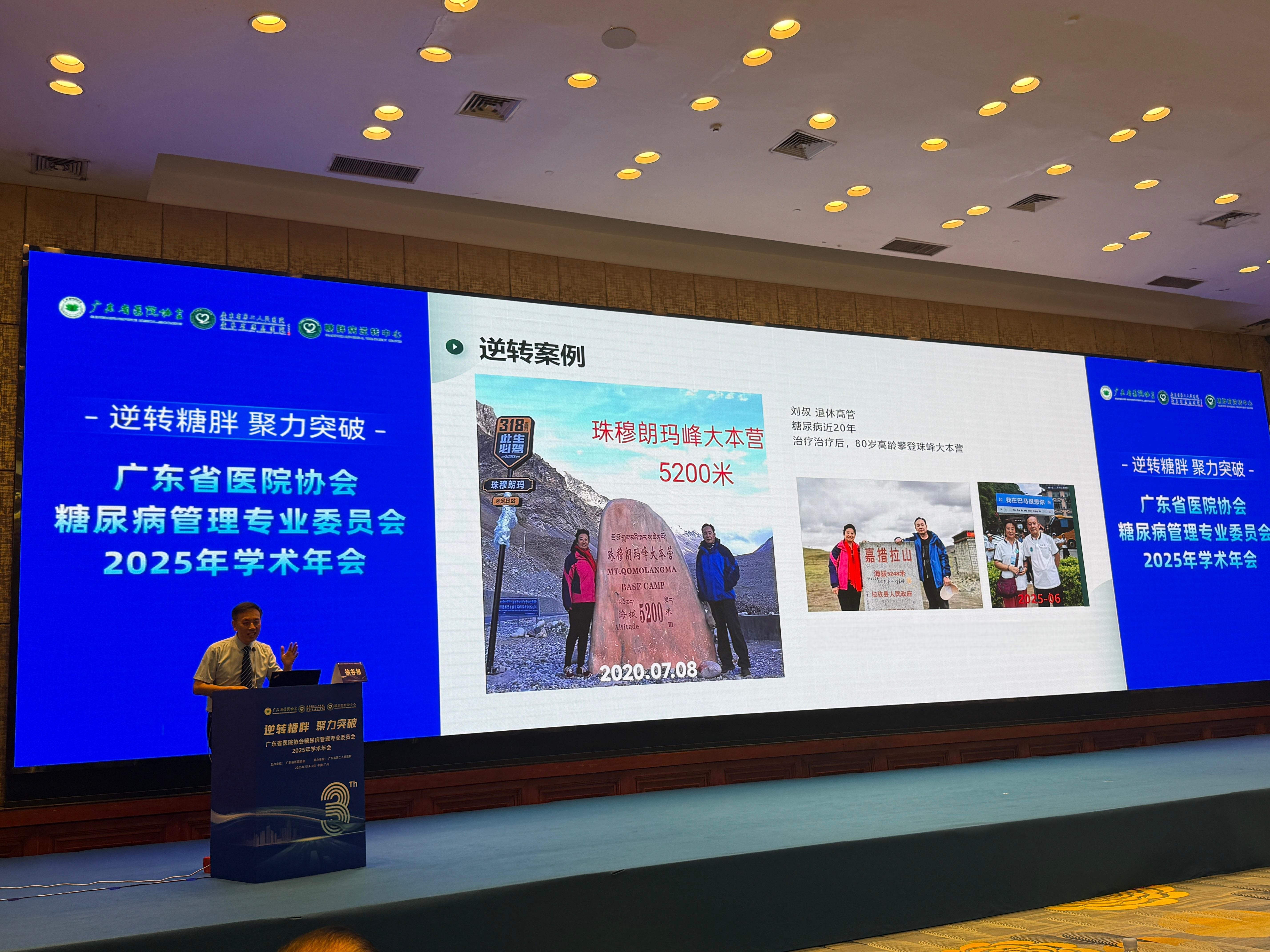 “2020年,我登顶海拔5000米的珠穆朗玛峰大本营。”当刘先生话音刚落,全场响起掌声,这不仅是刘先生战胜糖尿病的奇迹,也是无数糖尿病患者的梦想。该院糖胖病逆转中心主任徐谷根表示,团队的使命就是改变糖尿病终身服药的治疗模式,让患者少吃药、不吃药,血糖稳定,并发症减少。