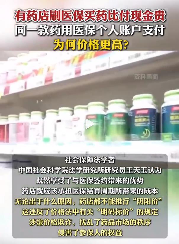 有专家表示,无论出于什么原因,药店都不能推行“阴阳价格”,这违反了价格法中有关“明码标价”的规定,涉嫌价格欺诈,扰乱了药品市场的秩序,侵害了参保人的权益。再说,药店因为进入了医保系统,会提高药品销售量,药店本身也有一定的经营成本,不能认为药店的行为就是合理的。