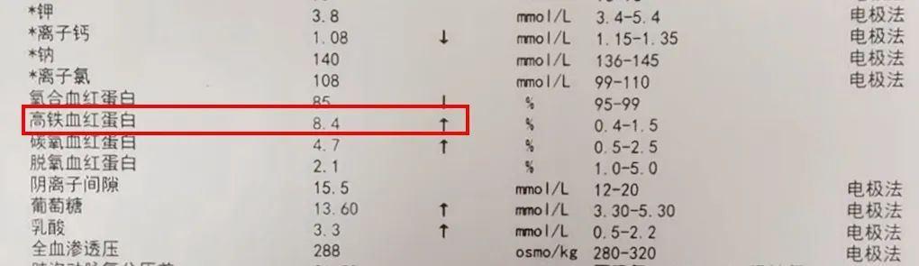 在被送到杭州市一医院瓶窑院区(余杭三院)急诊抢救室时,他已嘴唇发紫,血氧饱和度仅有82%,而高铁血红蛋白却高达8.4%,超过正常值近6倍。