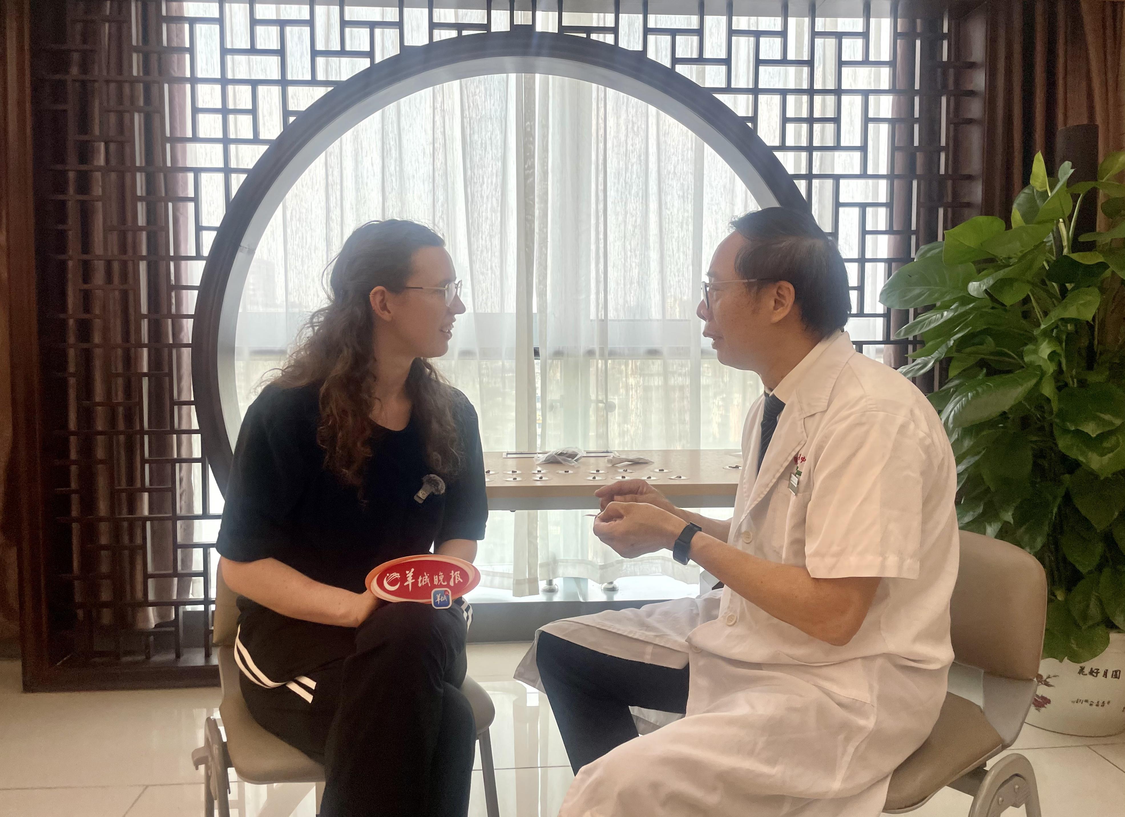 体验开始。经过问诊和打脉,岭南传统天灸非遗传承人、广东省中医院针灸门诊科主任李滋平教授为Kelsey制定了天灸方案:“你需要健脾补气、助阳祛湿!”