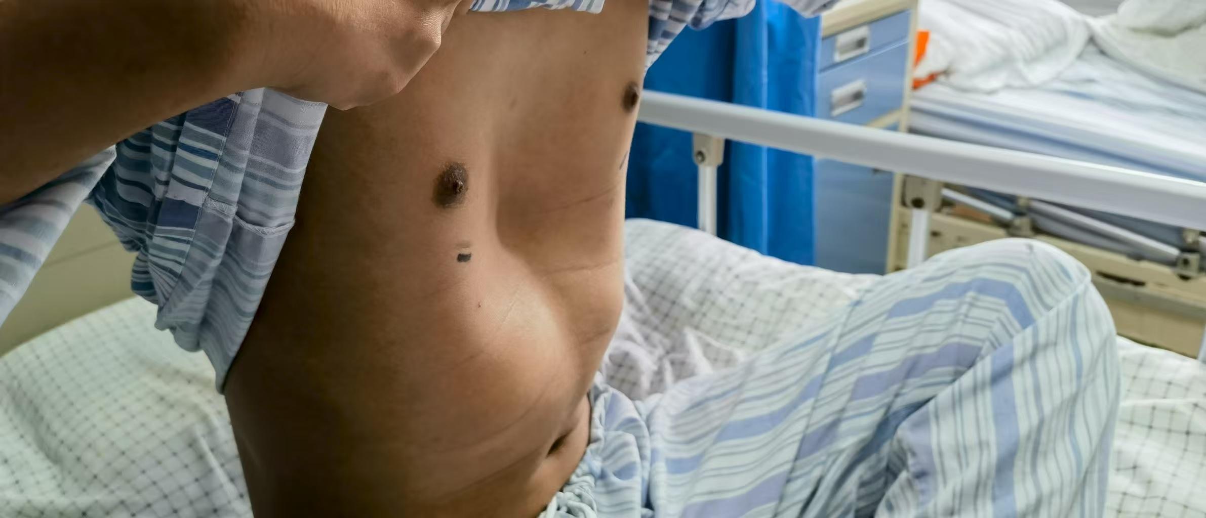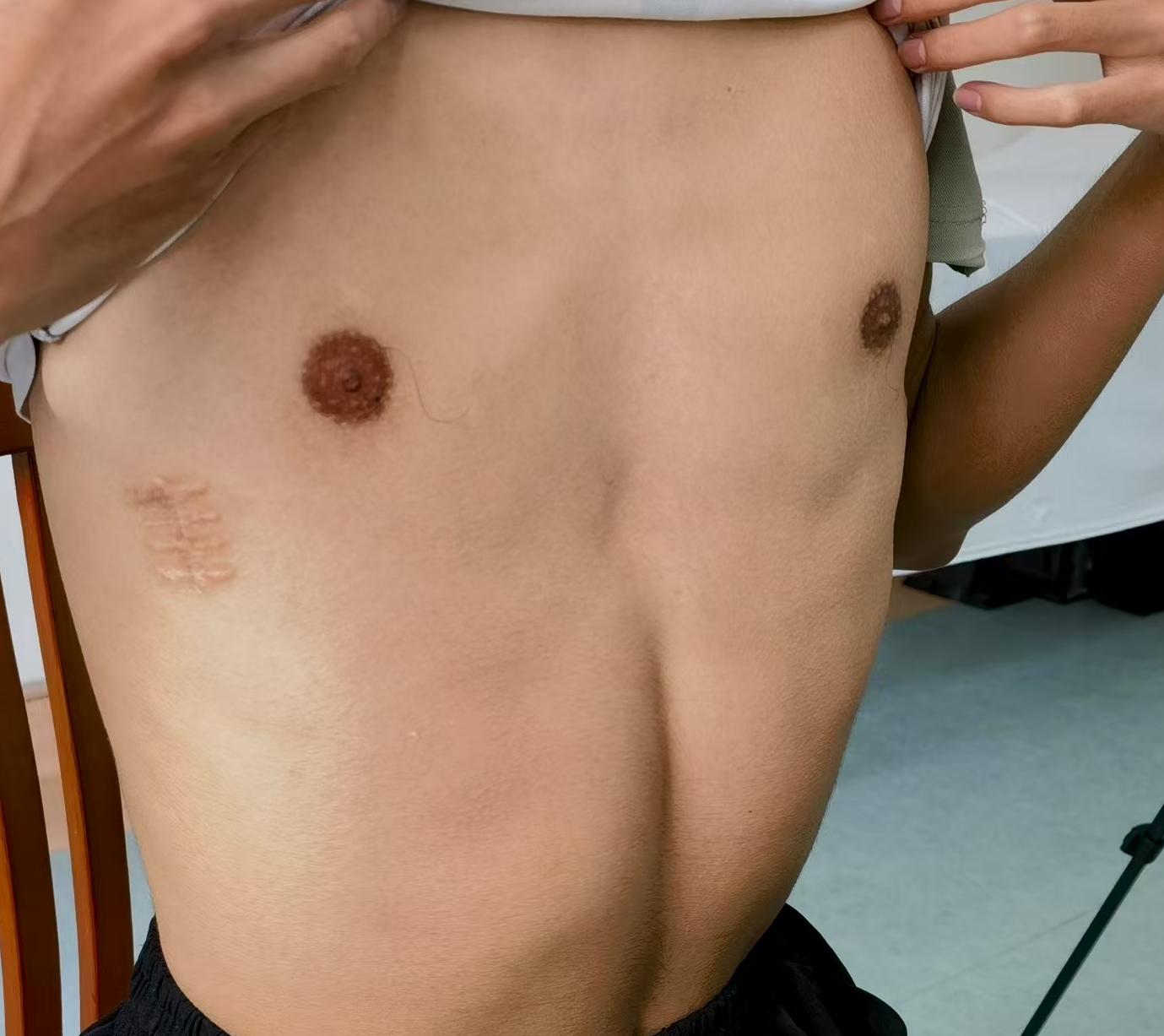 进入青春期,图图的胸骨凹陷日益严重,形如“脸盆”,严重影响了他的生活和心理健康,沉默寡言、不愿与人交流。如今,胸骨凹陷还影响到呼吸,稍微跑动一下就气喘起来。家长这才下决心暑假带孩子到医院治疗。