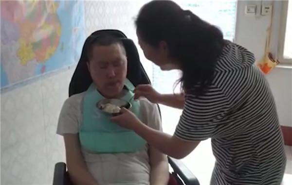 青岛平度的一处普通民居外,52岁的王杰俯下身,稳稳抱起110斤的丈夫崔文军。120斤的她,动作熟练却透着不易察觉的沉重。