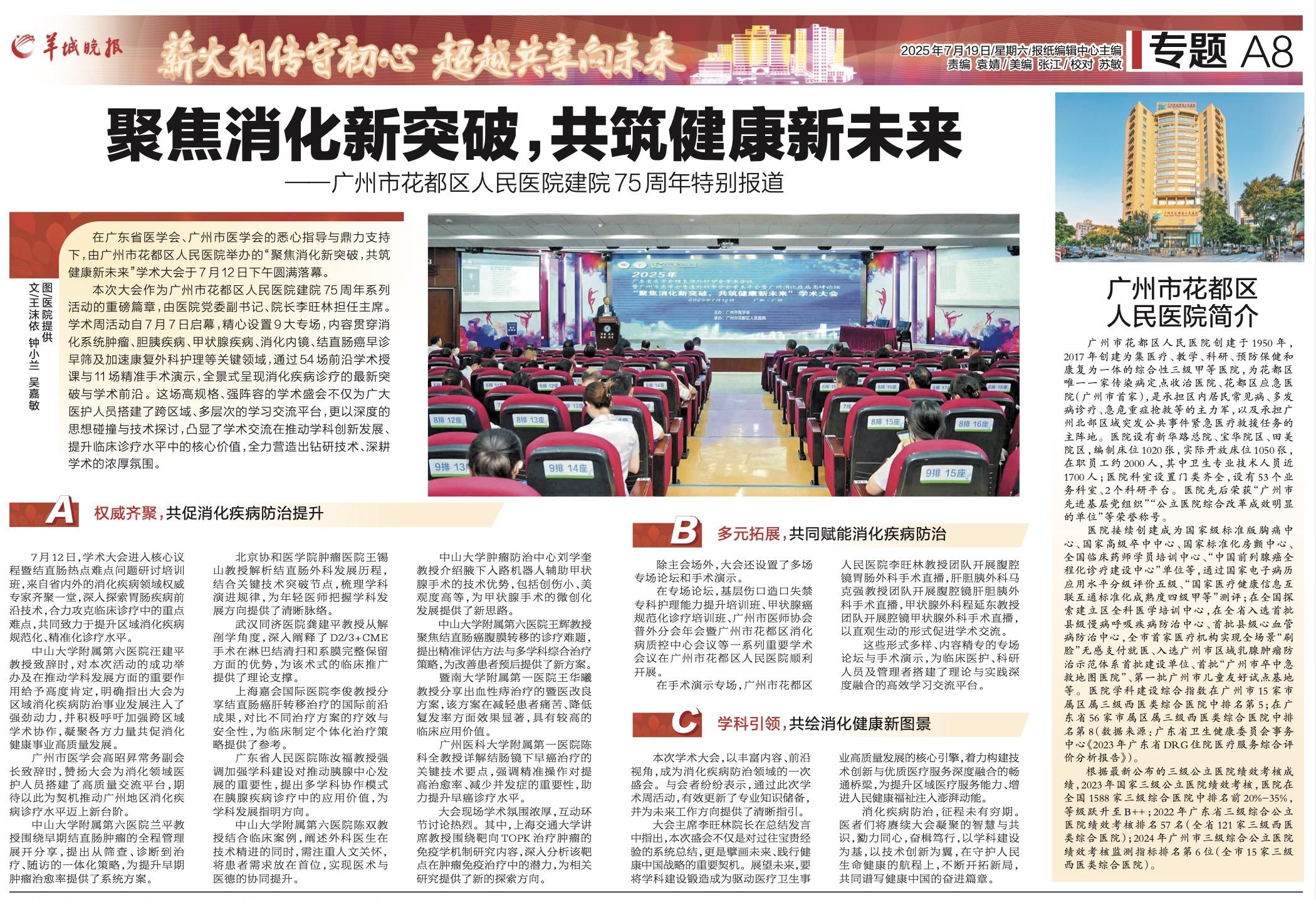 在广东省医学会、广州市医学会的悉心指导与鼎力支持下,由广州市花都区人民医院举办的“聚焦消化新突破,共筑健康新未来”学术大会于7月12日下午落幕。