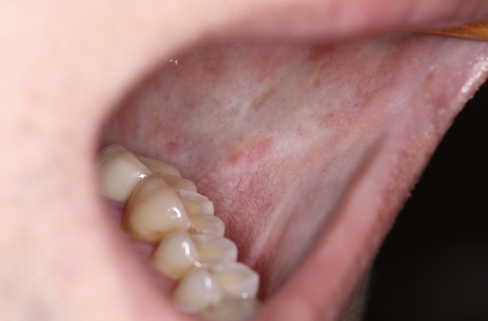 罗医师介绍,虽然患者嚼槟榔只有一年多时间,但是其口腔检查更显示有触目惊心的变化:原本红润的口腔黏膜失去血色,呈现独特的网状大理石样苍白,尤以颊黏膜为甚,用手触之,感觉黏膜弹性显著下降。