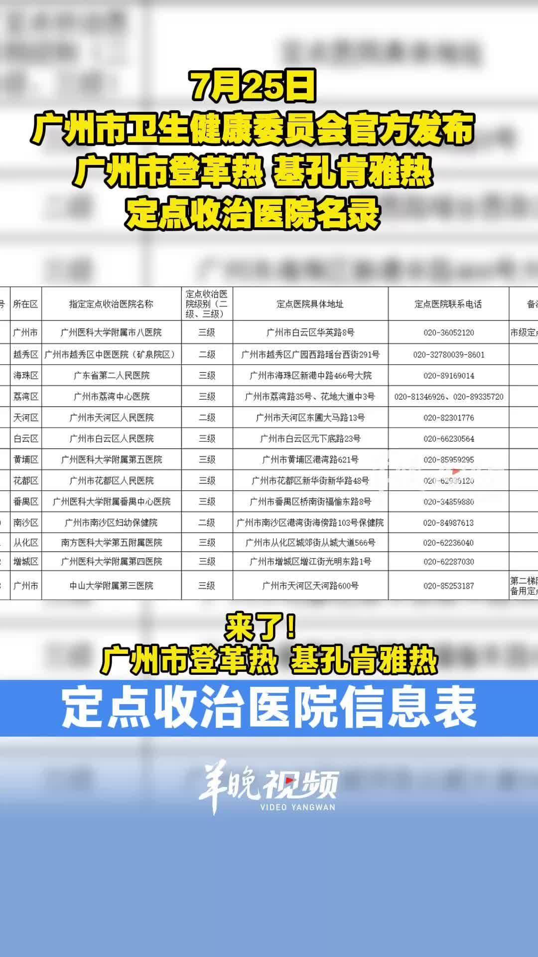 【视频】广州市发布13家登革热、基孔肯雅热定点收治医院