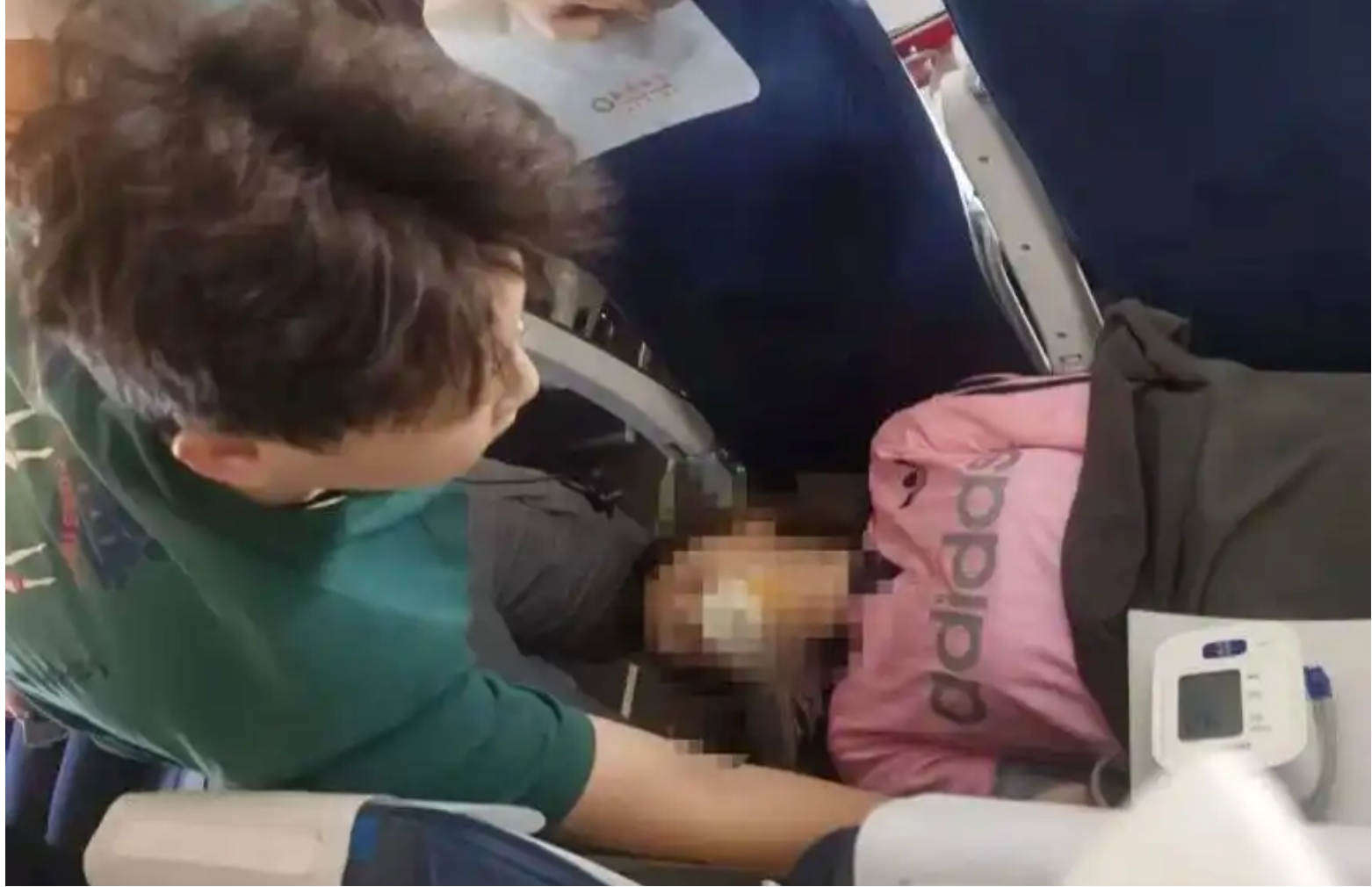 机组人员在一旁喂女生喝了糖水,喝完后孙毅杰让她躺下,机组人员随后把氧气瓶和急救箱拿来, 孙毅杰给女生吸氧,用急救箱里的仪器测量了她的生命体征,还好比较平稳。女生躺了一会儿,慢慢好转了,坐起来以后动态复查了生命体征,女生没啥大碍了。