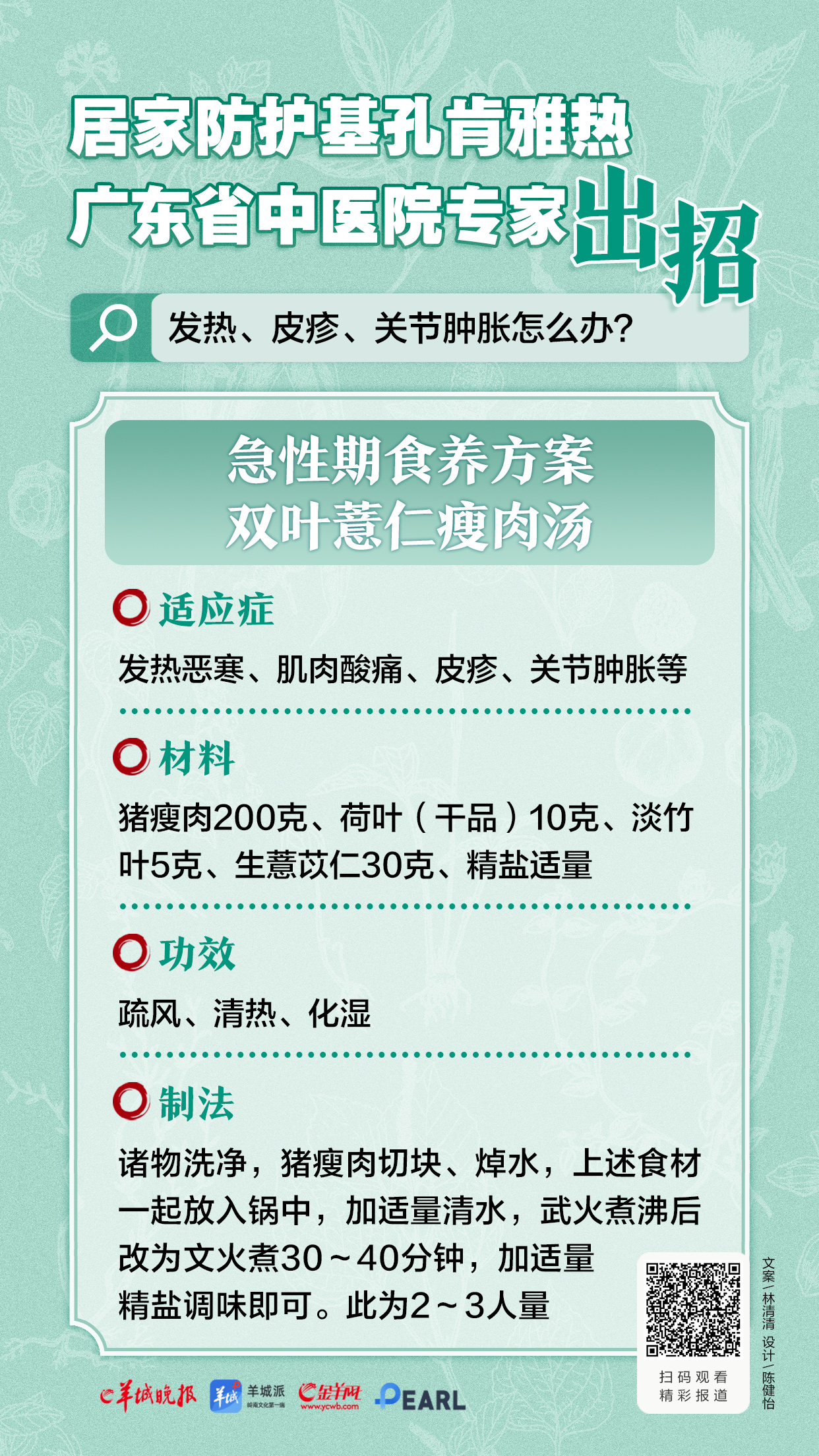 暑湿重,蚊虫袭扰、心烦不宁怎么办?急性期,发热、皮疹、关节肿胀怎么办?恢复期,疲倦、焦虑、胃口不好怎么办?居家防护基孔肯雅热,广东省中医院专家为你送上3招!