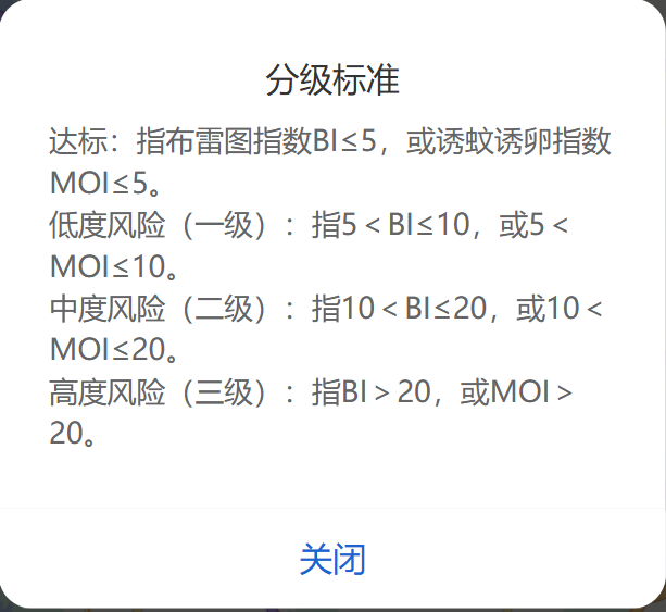 蚊媒风险等级是如何划分的呢?这里首先要解释一下两个专业术语的概念:布雷图指数(BI)以及诱蚊诱卵器指数(MOI)——