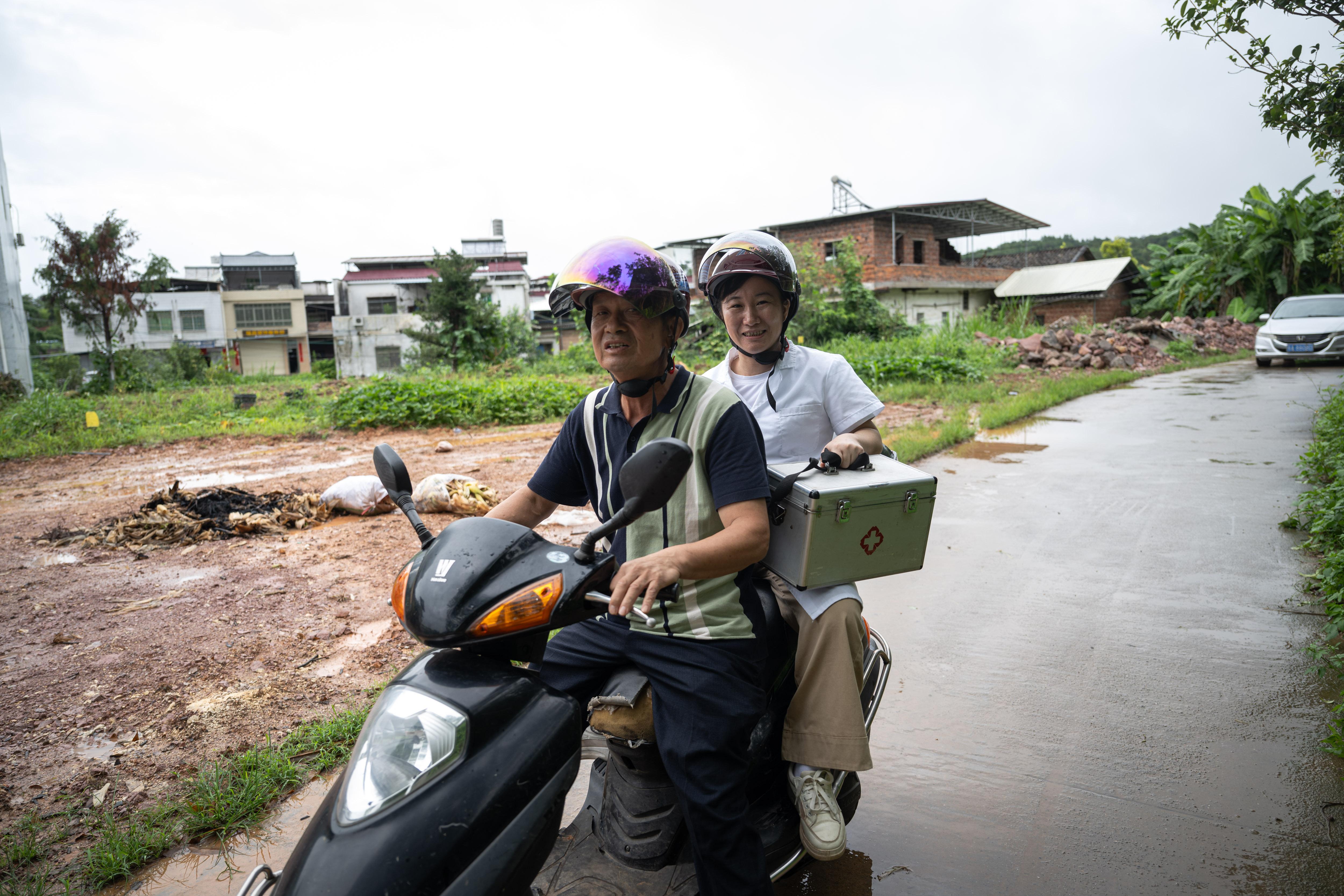 在粤东北群山环绕的禾礤村,黄小青逆着雨势,骑着电动车穿行在蜿蜒陡峭的山路上。路灯下,药箱在细雨中泛着微光,她昂着头,嘴里轻哼着《蓝莲花》——那是她每天穿越乡村出诊时的背景音乐。