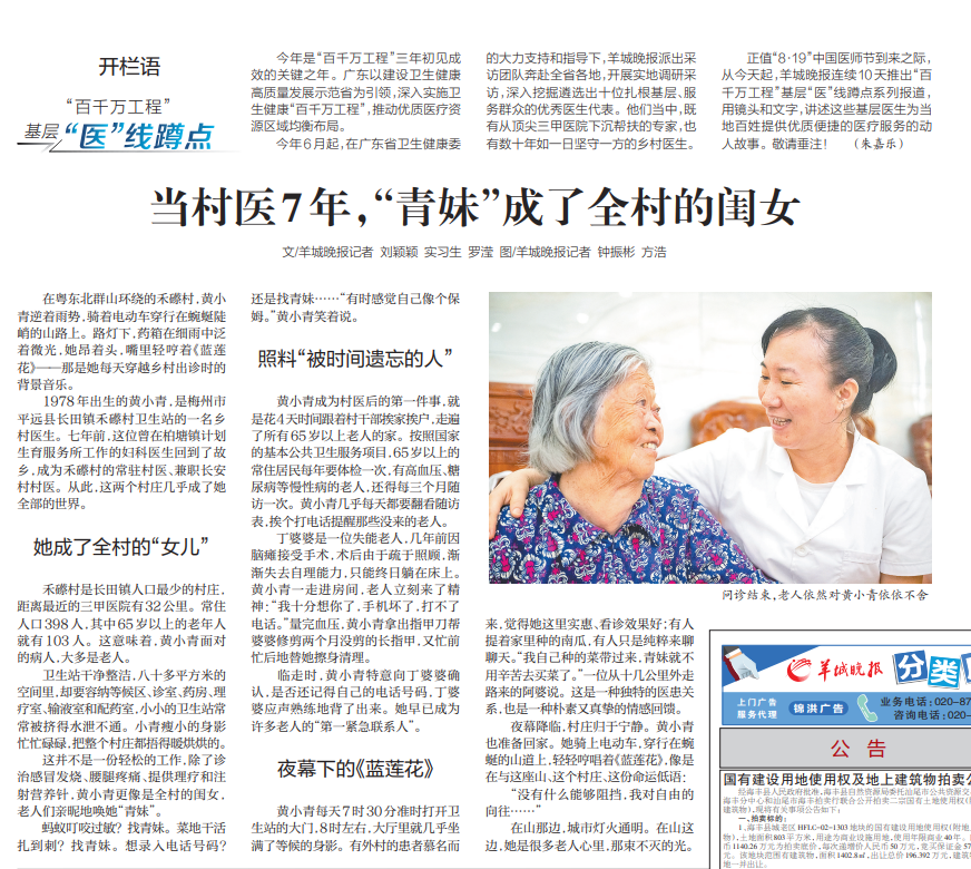正值“8·19”中国医师节到来之际,从今天(8月8日)起,羊城晚报连续十天推出“百千万工程”基层“医”线蹲点系列报道,用镜头和文字,讲述这些基层医生为当地百姓提供优质便捷的医疗服务的动人故事。敬请垂注!(朱嘉乐)