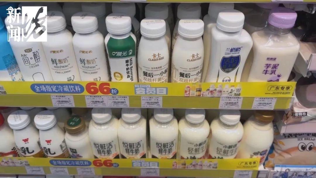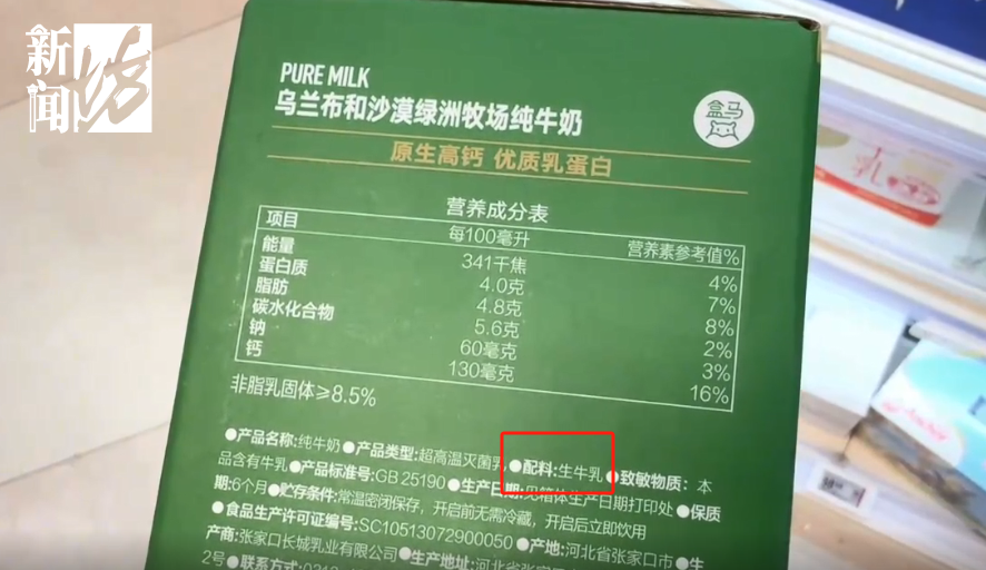 记者翻看了货架上的多款低温鲜奶,配料仅标注“生牛乳”