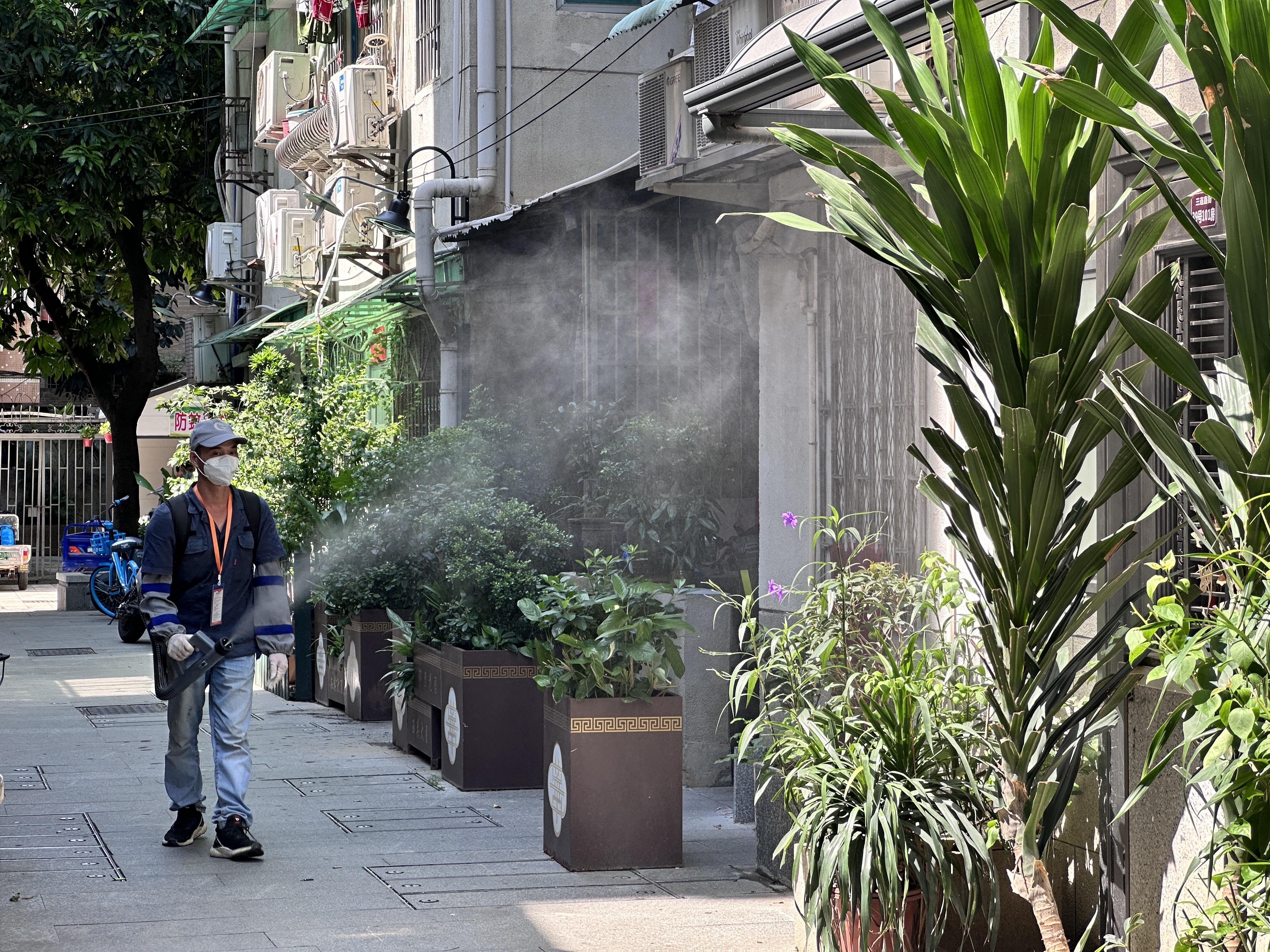 今天(8月9日)全天,广州在全市范围开展爱国卫生运动统一行动,重点整治环境卫生,清除蚊虫孳生地。上午,记者在荔湾区昌华街道西关大屋社区看到,志愿服务队分批清理楼顶废弃花盆,社区工作人员走访排查卫生死角,清洁人员在早上7点至9点统一进行消杀作业,居民自觉倒置积水容器、挂蚊帐,防控蚊虫。