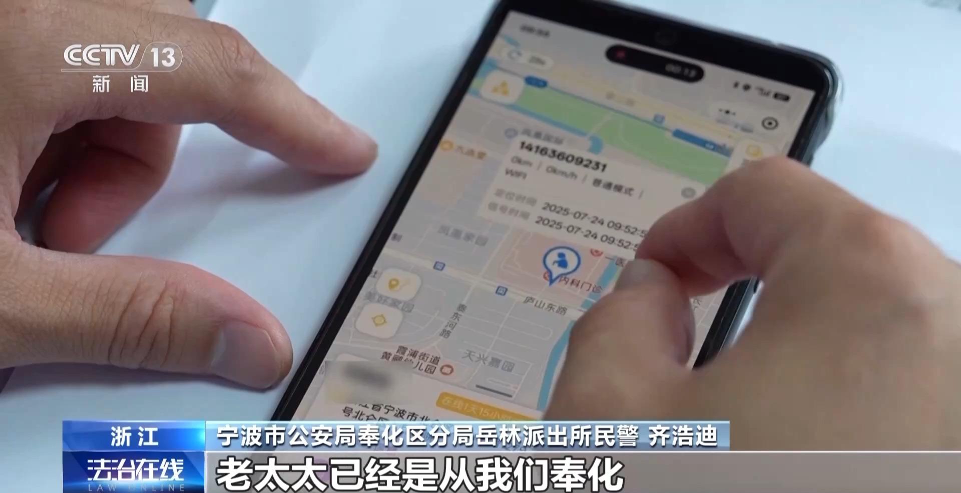 宁波市公安局奉化区分局岳林派出所民警 齐浩迪:不到5分钟就确定了,老太太已经从奉化乘坐地铁到达了北仑,民警及时联系了北仑当天值班的民警,北仑民警及时出警到小港那边的地铁站,在半小时以内找到了这位走失的老太太。