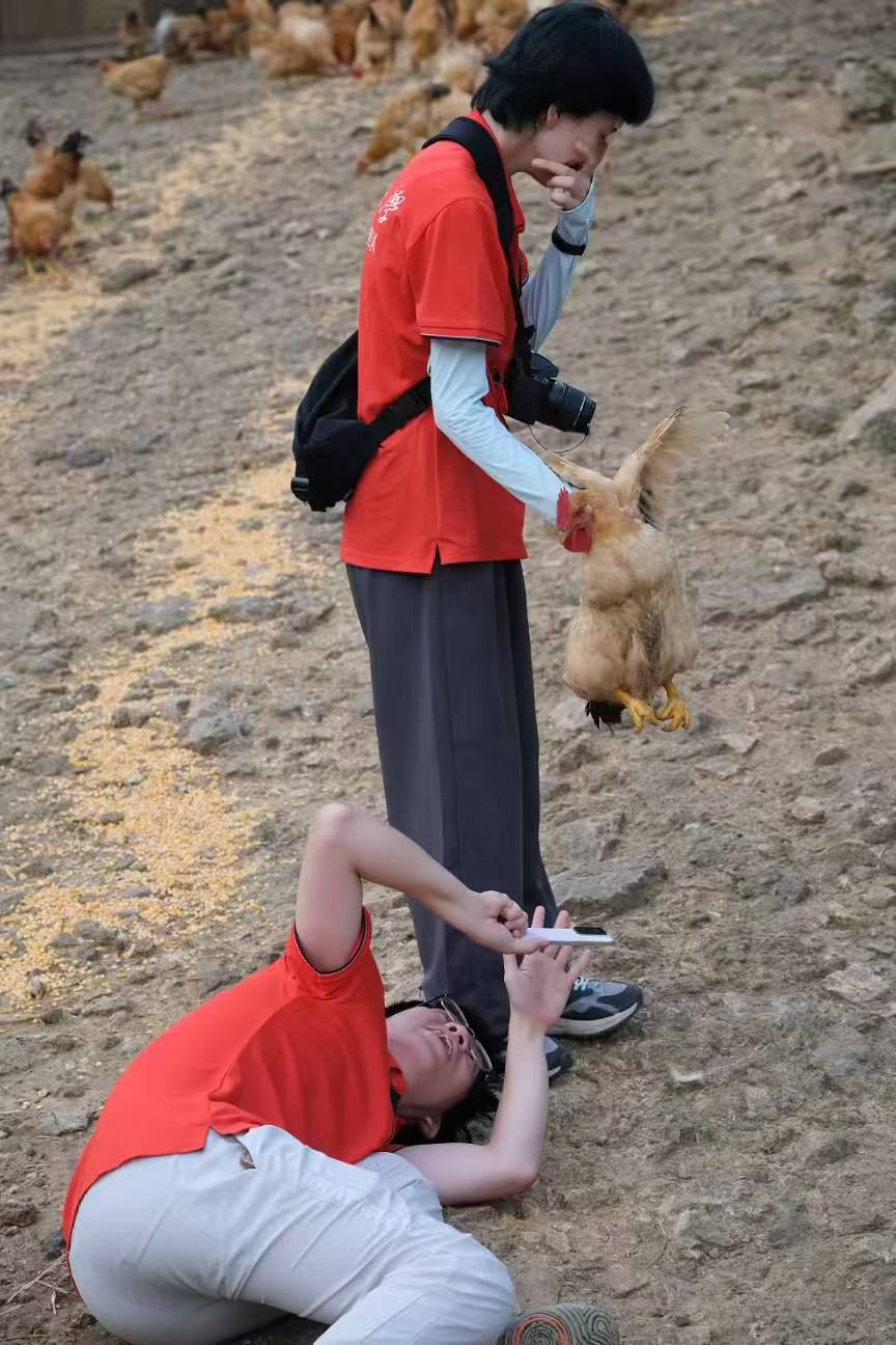 在下坪村,队员们用原创文旅宣传主题歌曲《小坑欢迎你》、绘画课程和沉浸式宣讲,引导孩子们了解家乡的自然与人文,厚植乡土情怀。同时,队员们还深入不同村落的田间地头与农户家,拍摄《舌尖上的小坑》微纪录片,记录鹰嘴桃、醉氧鸡等特色农副产品,以及韶州客家服饰的制作技艺等,展示小坑镇的山水之秀、物产之丰和文化之韵。