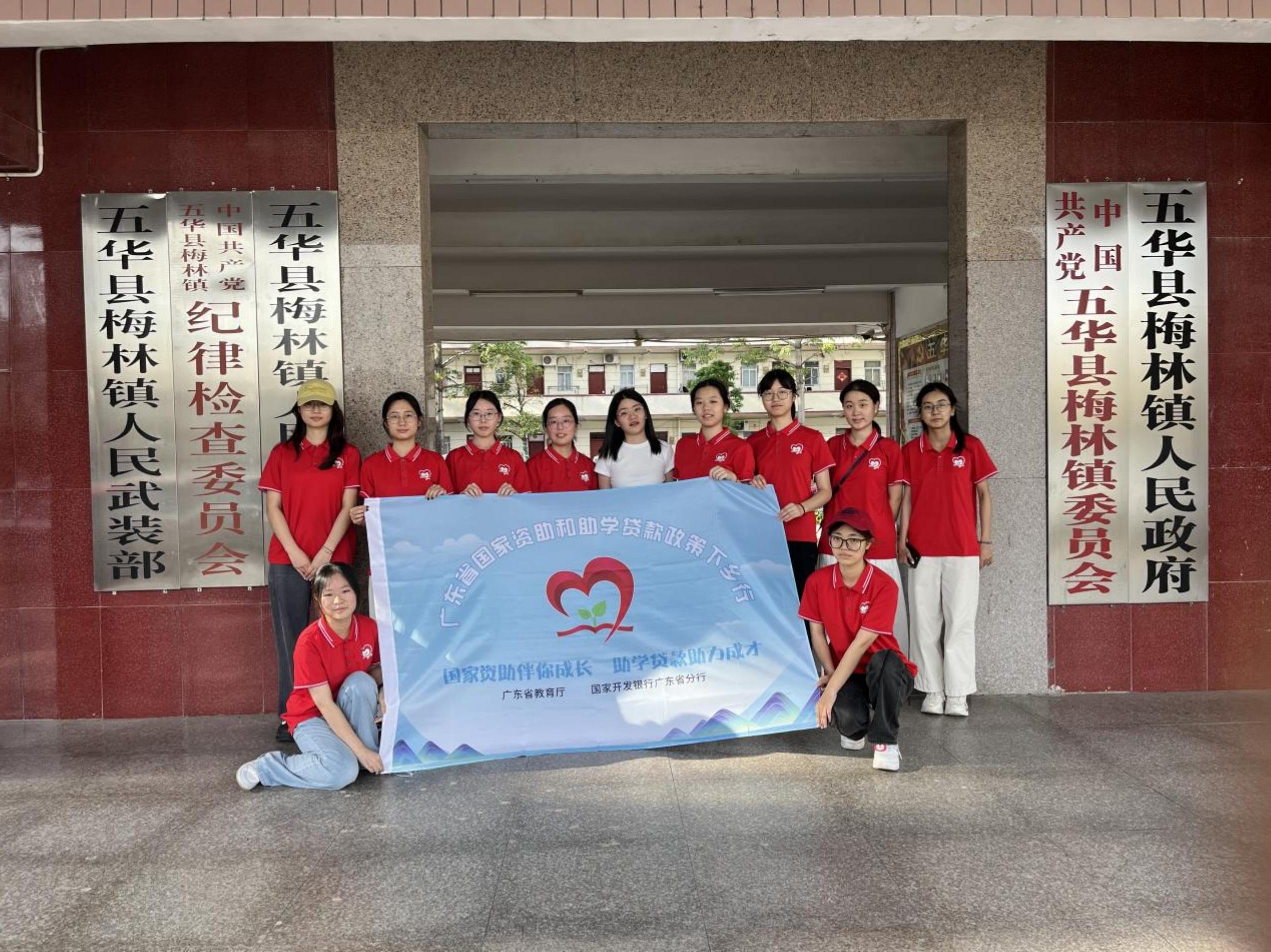 另一边,“青衿扶志”服务队于7月14日至18日前往梅州五华梅林镇,开展“国家资助和助学贷款政策下乡行”活动。队员们通过街头答疑、入户走访、集中宣讲等方式,向当地学生和家长详细解读生源地助学贷款、奖助学金等政策,发挥卫生管理专业优势,讲解自我权益保护知识和医保报销流程,提升政策知晓度与惠民温度。