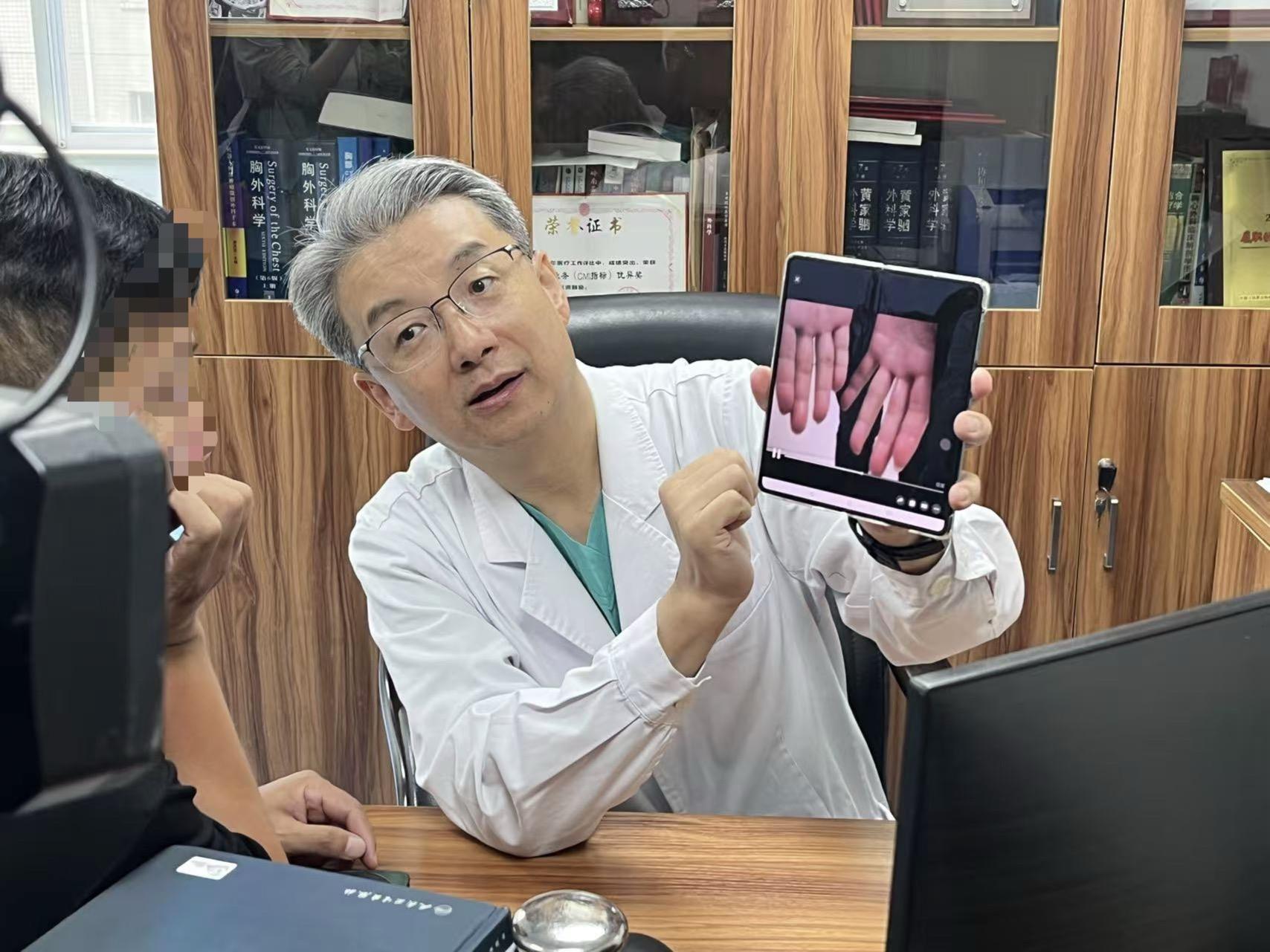 广州中医药大学第一附属医院胸心外科主任王继勇教授介绍,手汗症是一种因胸交感神经过度兴奋引发的先天性疾病,患者手掌、额头、腋下或脚部会不受控地大量出汗。近日,一名29岁的患者专程从福建到广州求医,他就是因为双手滴水而饱受困扰,“心情一紧张,汗珠直接从手掌及手指表面渗出,甚至会滴水。”