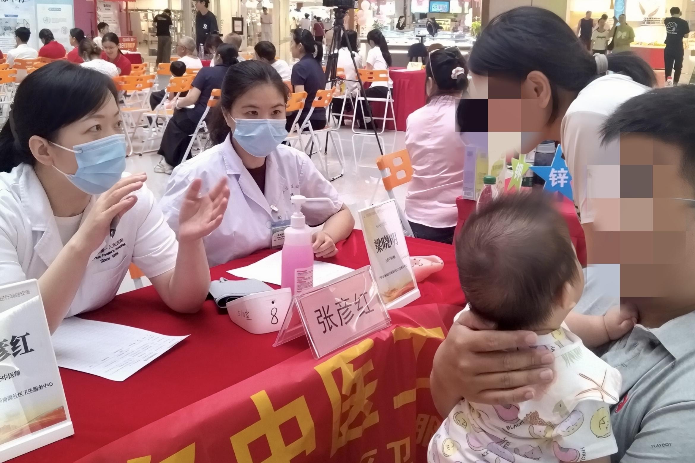 健康咨询区域同样人气高涨。除了参赛队伍提供的专业咨询外,义诊活动也同步进行,现场由社区卫生服务中心医生提供量血压、把脉问诊、耳部艾灸等便民服务。