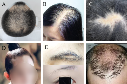 六、植发修复,如植发失败的“二次翻修工程”(见下图F)。