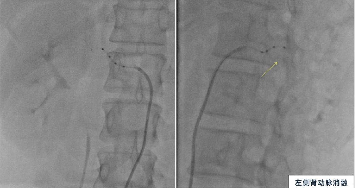 夏文豪团队对孔女士双侧肾动脉主干及分支进行了全面、精准的消融,共消融38个靶点,手术仅仅用了1小时。“在药物镇静后,我们会在患者的大腿根部股动脉穿刺置管,消融导管通过股动脉最后到达肾脏动脉。导管电极贴靠着血管壁,即可完成消融,最后移除导管,患者体内无任何植入物留存。在这个过程中血管壁不会受到损伤,但附着在肾动脉周围的神经被破坏后,活性减弱进而实现降压的目的。” 夏文豪教授介绍手术过程。