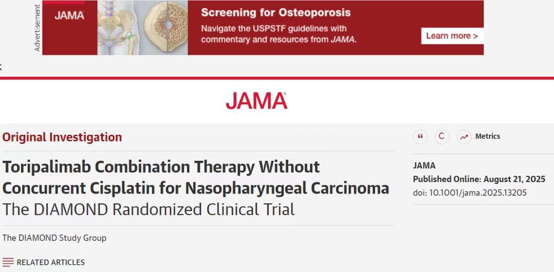 局晚期鼻咽癌标准治疗中,顺铂化疗的高毒性问题一直困扰医患双方。这一临床痛点终于被中国学者破解。8月21日,中山大学肿瘤防治中心马骏院士团队在国际顶尖医学期刊《美国医学会杂志》(JAMA)发表鼻咽癌免疫治疗新成果——特瑞普利单抗全程治疗且在同期治疗阶段去除顺铂后,不仅疗效未受影响,还显著降低了毒性,改善了患者的安全性和治疗体验。
