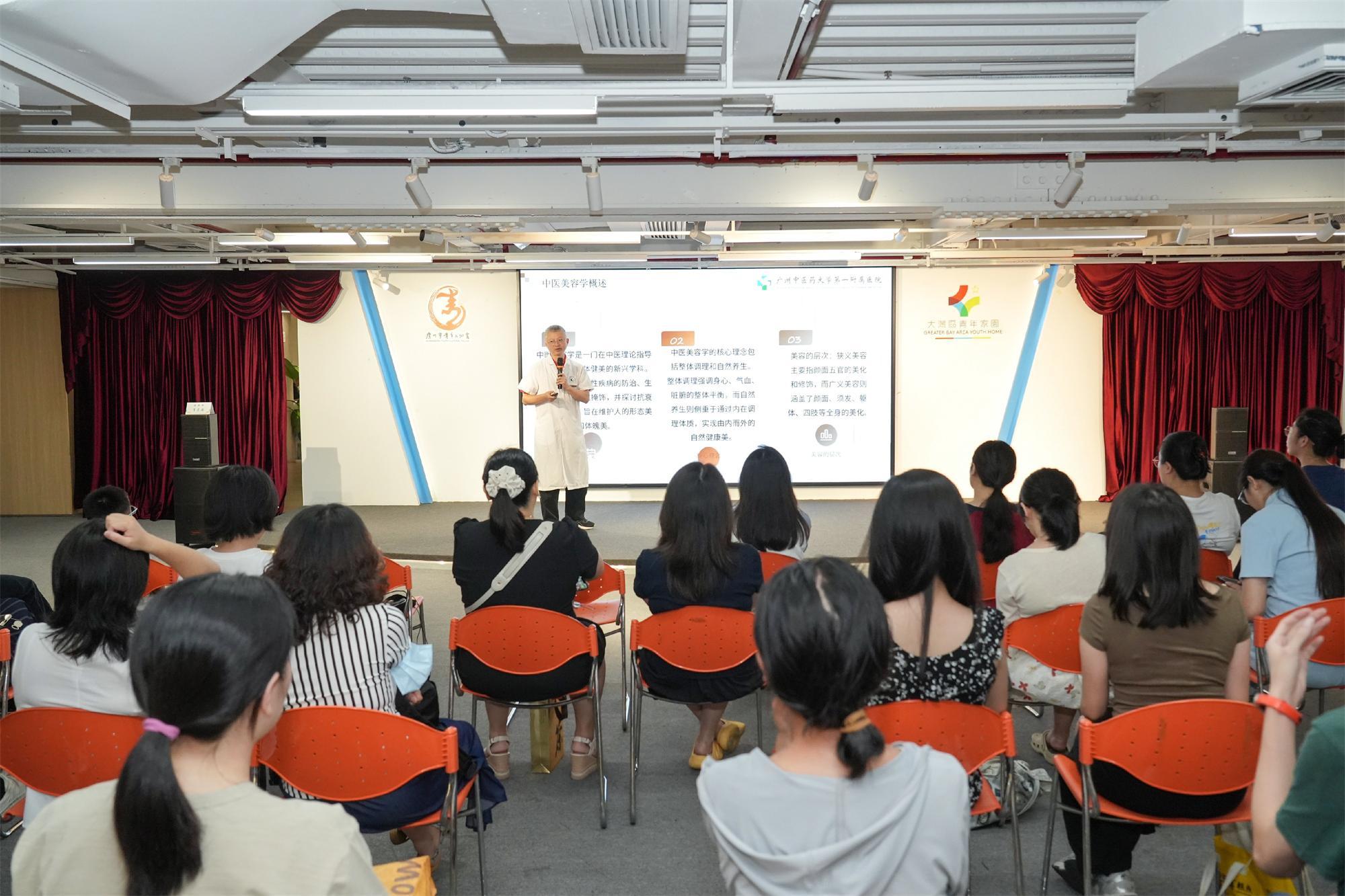 活动当晚,以带跳中式养生操走红的“网红医生”广中医一院李东海主任中医师,也来到现场教学,带跳“开心操”“美肤操”。他的系列“古法健身操”,在自媒体平台吸粉百万,总获赞近千万,成为年轻人心目中的养生大咖。李东海表示,在青年夜校开展“肌活焕彩、律动养心”主题公开课,讲解中医皮肤保健知识,希望帮助青年找到与自己的身体对话的方式,也让中医药千年智慧以鲜活方式,让青年可感可触。
