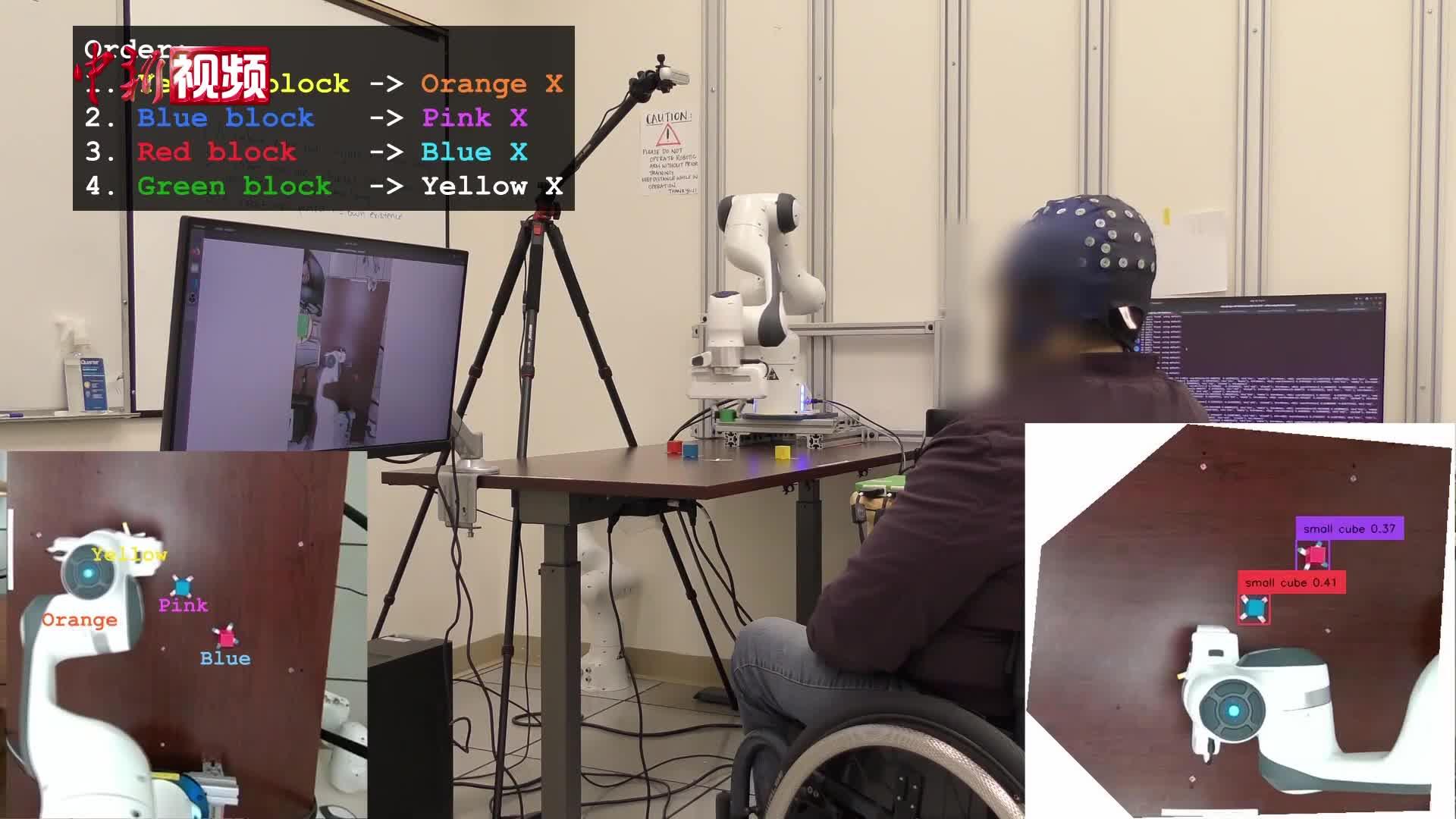 在测试这个有AI“副驾”的脑机接口时,一位因脊髓损伤而腿部瘫痪的受试者在控制计算机光标的任务中,其表现提升为没有AI“副驾”辅助时的3.9倍。未瘫痪受试者在AI辅助后的表现是平时的2.1倍。不仅如此,瘫痪受试者还能操控机械臂将彩色方块移动到特定位置,这在之前没有AI辅助的情况下是无法完成的。