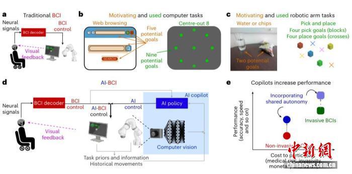 该论文介绍,脑机接口能让用户利用脑信号操控装置,但它们通常不准确也不可靠。许多日常行动都是目标驱动,有可预测的模式,如使用计算机或拿取物品。AI“副驾”或可通过解读意图和辅助行动的方式提升用户操控力。
