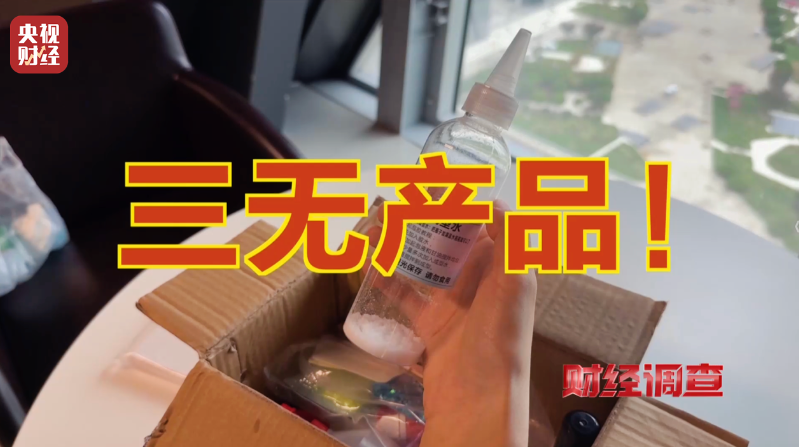 这类高危有毒化合物,商家在销售中无任何消费提醒,且成型水瓶身无任何生产信息,属典型“三无”产品。