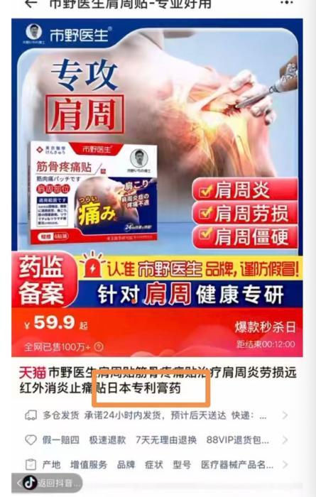 “这款市野肩颈贴,东京医学联合开发,当地卖了几十年。”