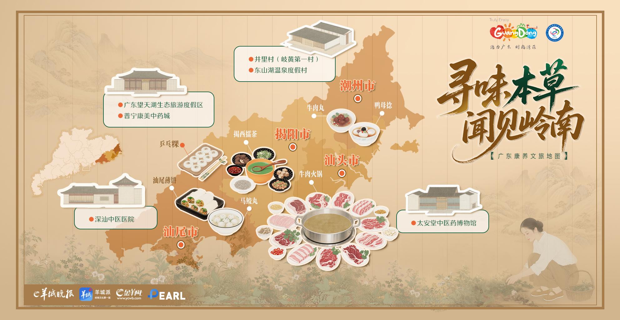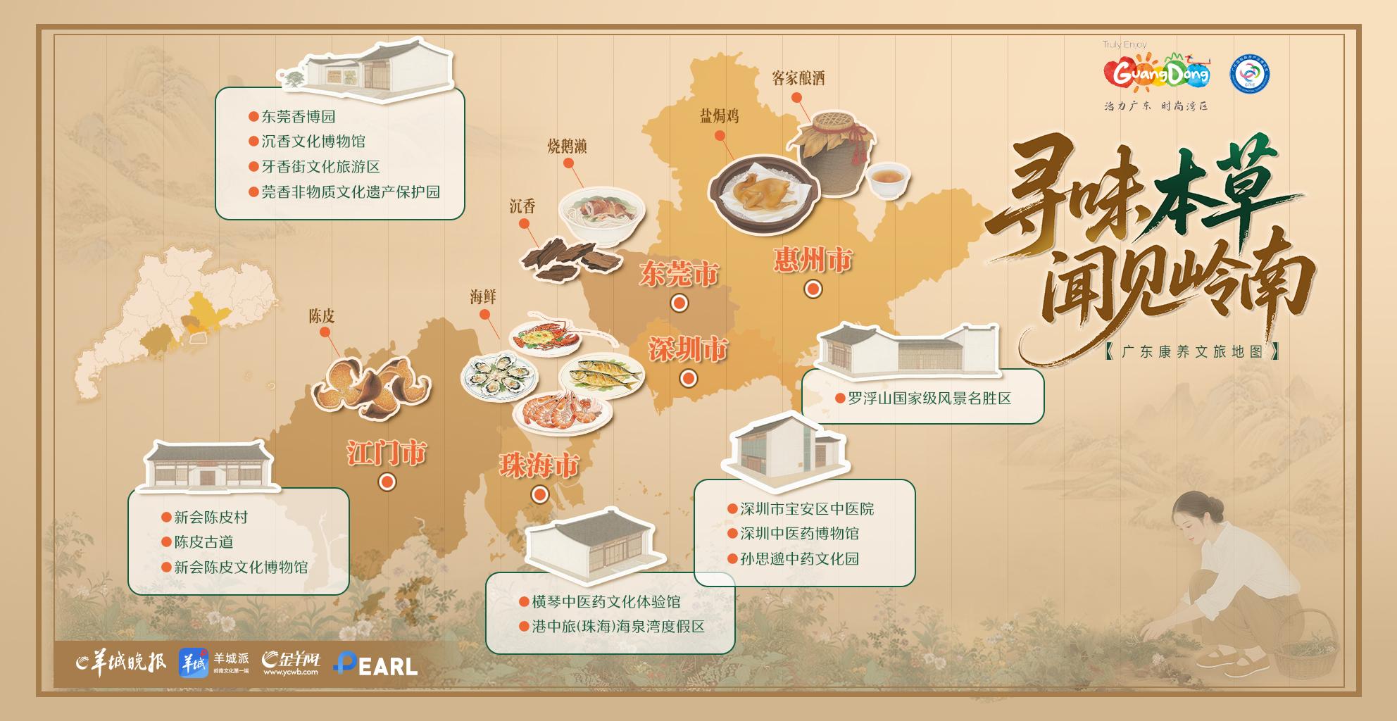 陈皮、沉香、客家娘酒、盐焗鸡,还有各地特色的中医药博物馆、养生天灸打卡点……边旅游边养生,现在有了全新指引。9月12日,由羊城晚报携手广东省中医院共同推出的《2025广东康养文旅地图》,在广东旅博会现场全国首发。作为本次旅博会上“岭南养生局”的一大亮点,吸引了不少市民关注。
