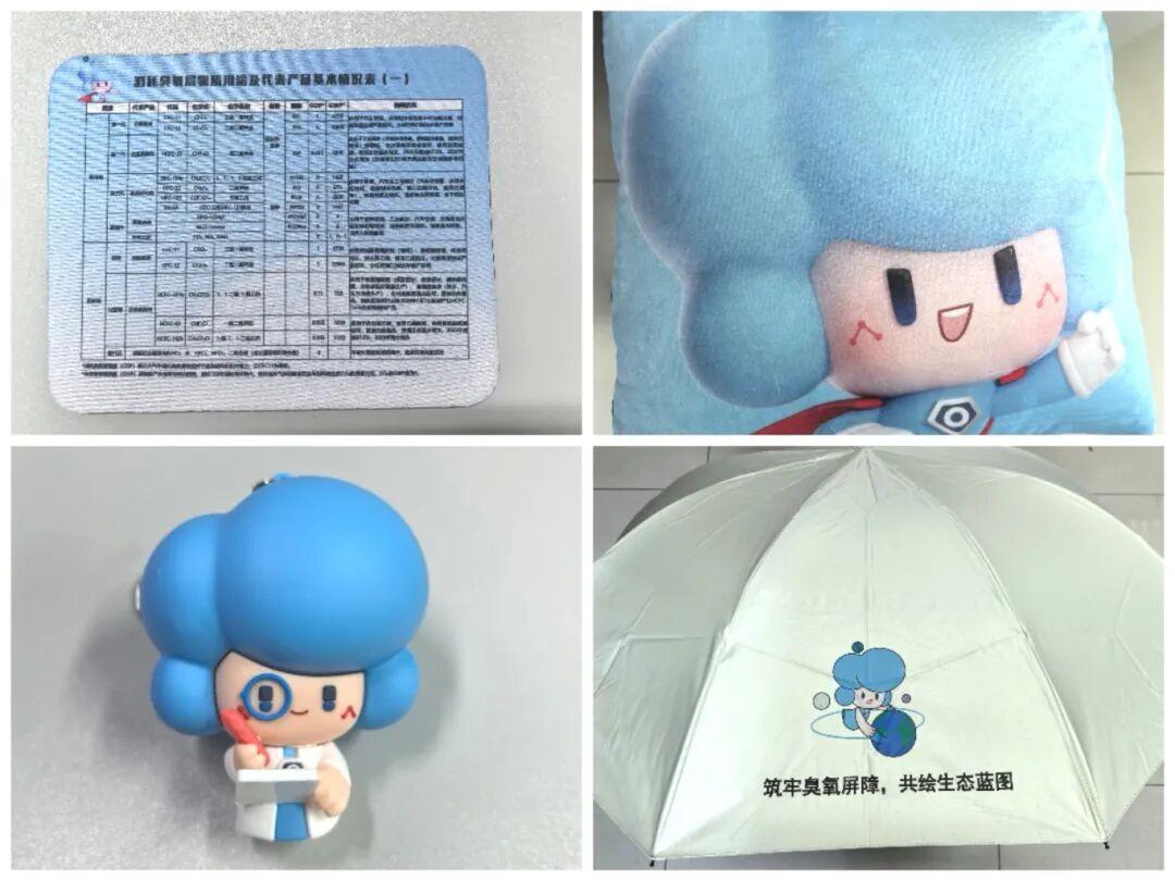 据了解,广东还特别设计制作一批主题文创产品,涵盖太阳伞、抱枕、鼠标垫等日常用品。产品设计巧妙融入“奥卓”IP形象、臭氧层科普漫画等元素:太阳伞印着“奥卓守护,UV不怕”的标语,提醒公众臭氧层的防晒作用;抱枕、鼠标垫则印有消耗臭氧层物质防治小知识。