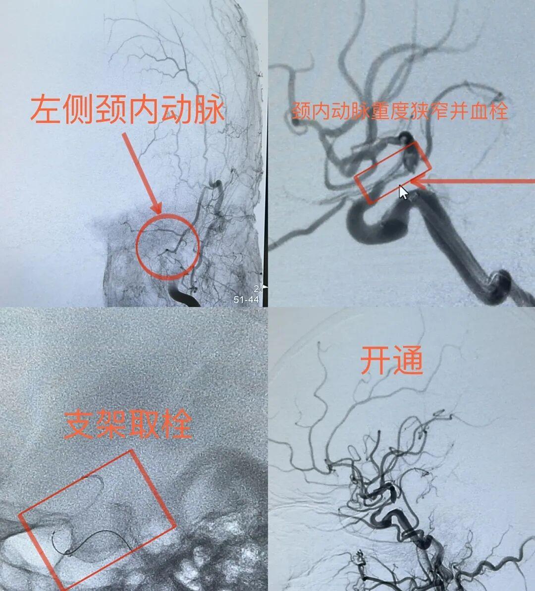 医院神经内科介入团队评估后,决定立即实施介入取栓手术。在征得家属电话同意并启动应急签字程序后,团队于全麻下通过微创方式,抽吸并以支架“网”出栓子,成功开通闭塞血管,为患者抢回“大脑生机”。