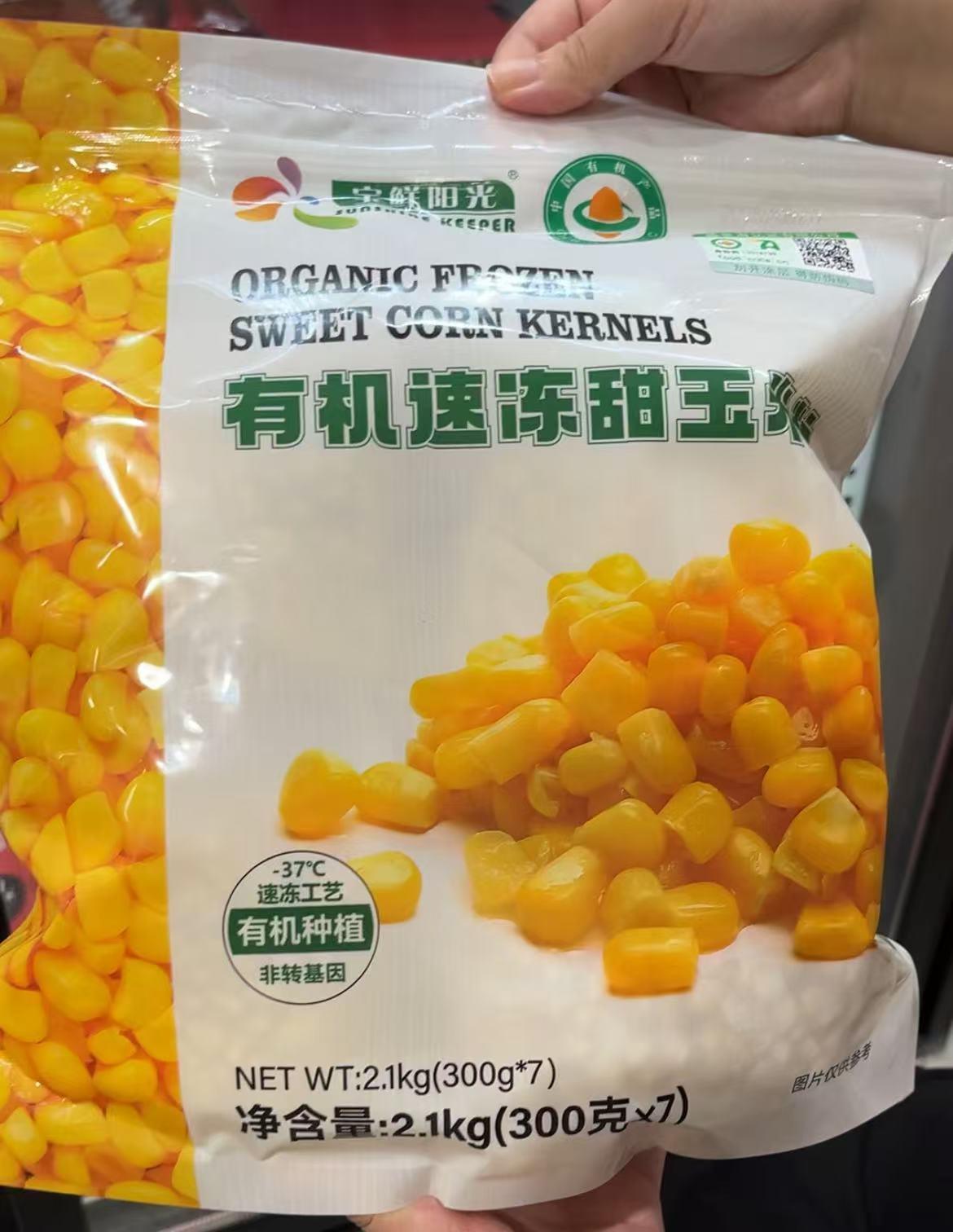 冷冻混合蔬菜旁边的货架上放着有机速冻甜玉米粒,袋子上写着-37℃速冻工艺,保质期18个月,保存方法是-18℃冷冻保存。记者还看到有冷冻蓝莓、速冻芒果菠萝丁混合等冷冻果蔬。
