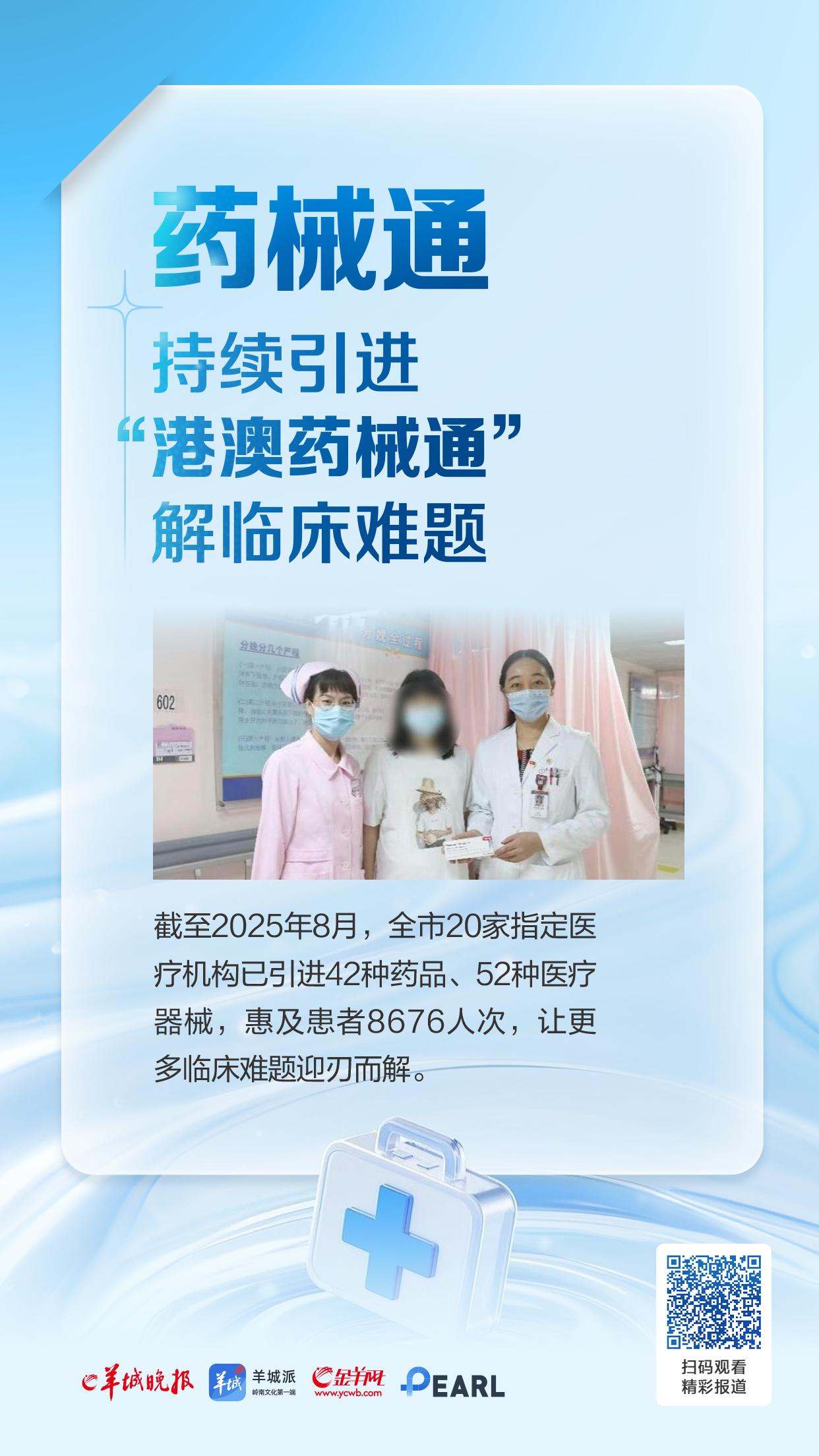 高质量药械的引进,有效支持了临床难点和痛点问题的解决。据广州市卫生健康委介绍,截至2025年8月31日,全市20家指定医疗机构通过“港澳药械通”政策引进42种药品、52种医疗器械,累计惠及患者8676人次,切实改善了患者就医体验。