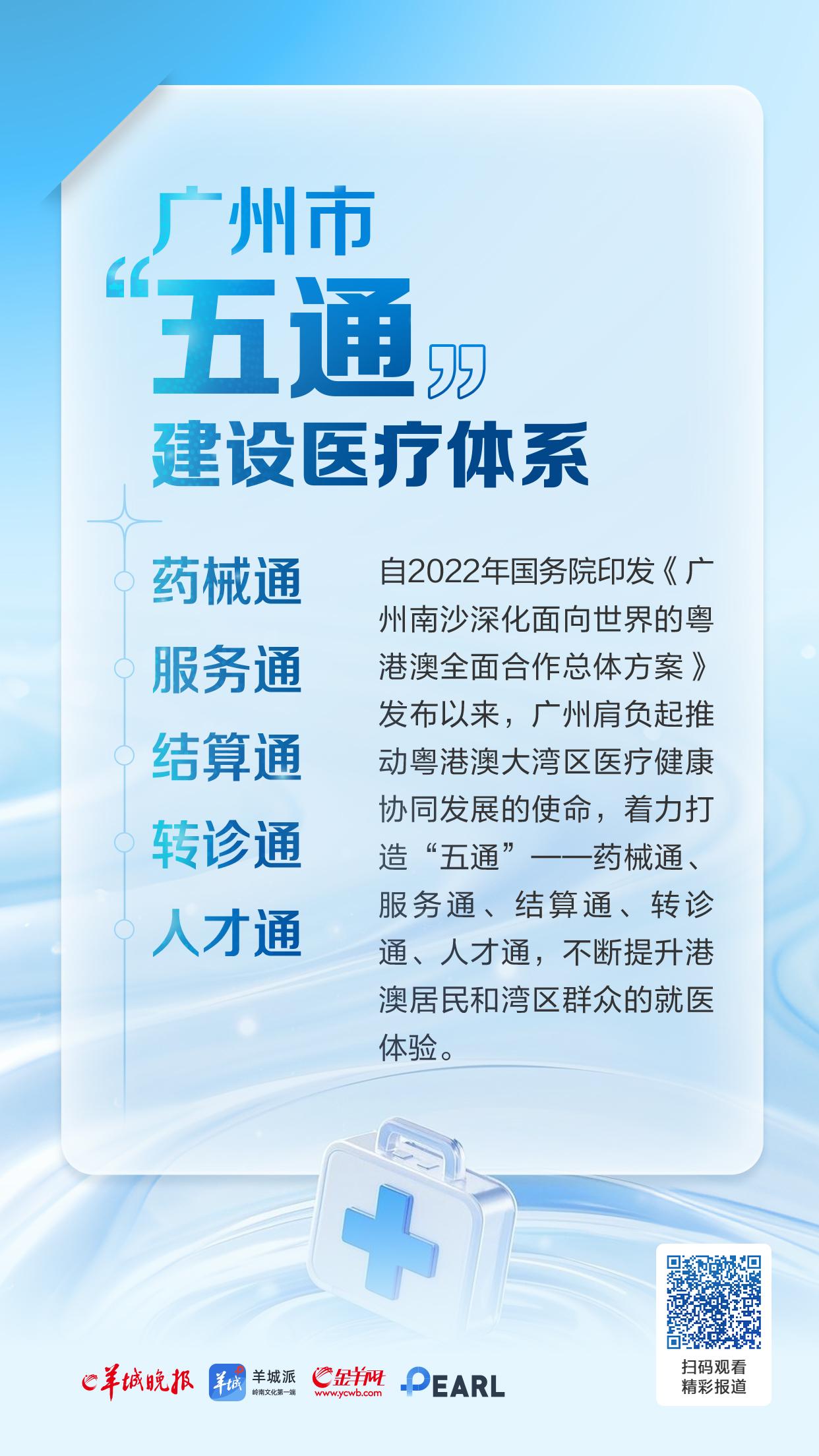 这是广州市“五通”建设医疗体系的缩影。自2022年,国务院印发《广州南沙深化面向世界的粤港澳全面合作总体方案》,提出“打造规则衔接机制对接高地”“便利港澳居民就医养老”以来,广州肩负起推动粤港澳大湾区医疗健康协同发展的使命,推动打造药械通、服务通、结算通、转诊通、人才通。