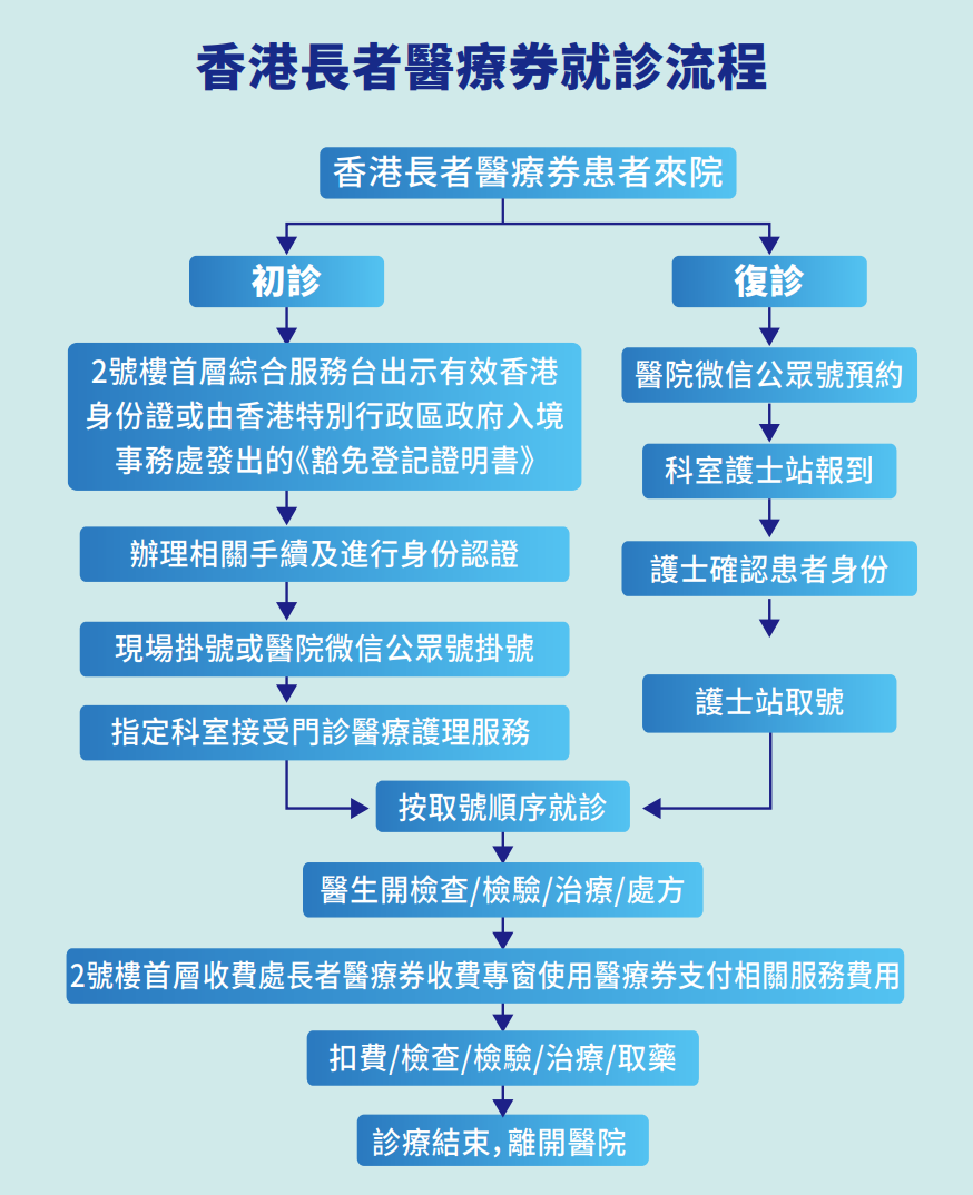 医院执行院长张涛介绍,为顺利对接试点计划,医院提前一年进行系统筹备,制定全流程就医指引、完善适老化标识、配备粤语服务人员,并在香港医务卫生局指导下完成“医健通”系统对接,实现跨境电子健康记录无缝流转。目前,医疗券可覆盖医院40个指定科室,包括内科、外科、康复科、眼科、口腔科、耳鼻喉科及中医科等,同时涵盖疫苗接种、预防保健和健康体检服务。长者可通过专窗或线上预约挂号,即可直接抵扣费用。