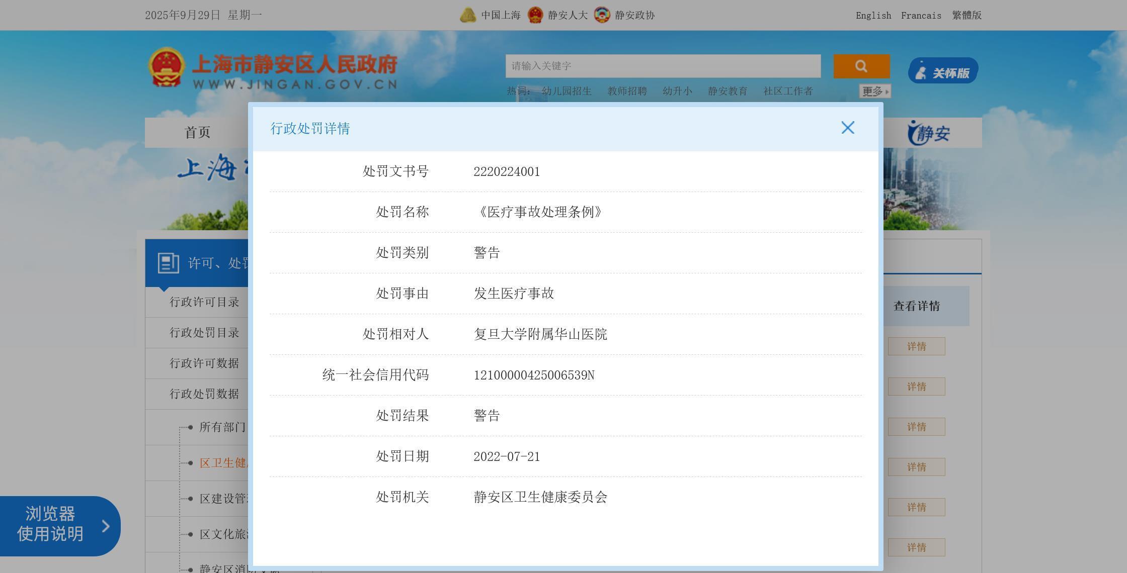 29日,静安区卫健委相关科室工作人员回应记者称,2022年7月,区卫健委确实依据本次医疗事故的鉴定结果,按照相关规定对华山医院涉事的胡姓医生作出警告处罚。朱女士对处罚结果有异议,已向法院提起诉讼,法院也进行了判决。